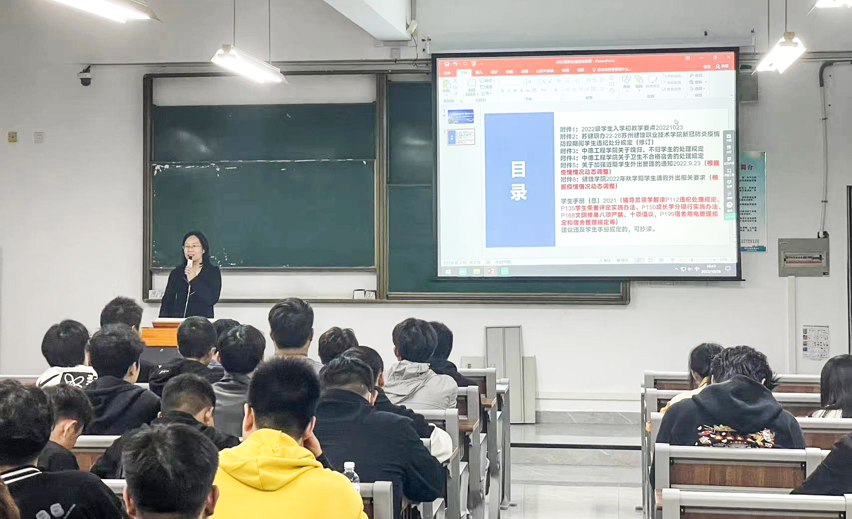 从学业规划、毕业要求、课程安排、学风建设和大学生行为规范等方面展开的新生入学教育,帮助学生明确了学习目标和疫情常态化下的学生管理要求。会后,各位老师寄语新生们:精彩的大学生活即将翻开篇章,希望同学们带着梦想走进来、带着发奋学下来、带着乐观拼下来、带着快乐过下来、带着坚韧搏下来、带着本领闯出来!智能制造学院整个新生入学教育安排细致、有条不紊,为新学年各项工作的顺利开展奠定了基础。(文/顾益 审核/孙笪忠)