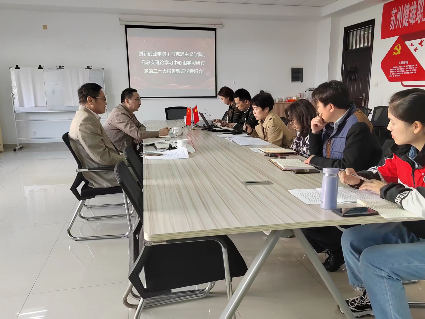 10月19日下午,根据校党委安排,创新创业学院党总支在C1二楼会议室组织召开党总支理论学习中心组学习研讨党的二十大报告暨巡学旁听会。校巡学旁听考核小组丁锴和陈杰同志到会指导,学院党总支班子成员参加学习。