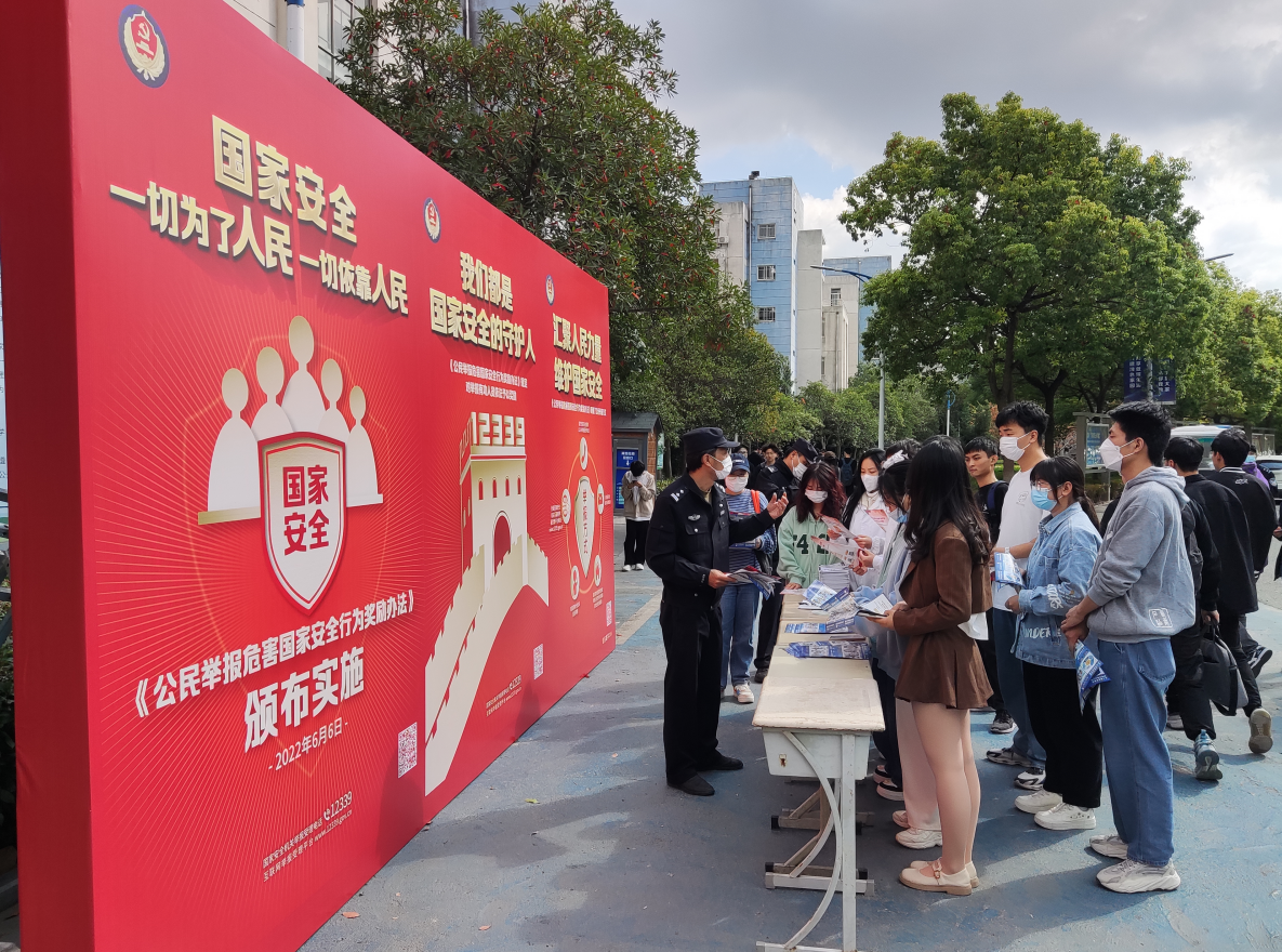 2022年11月1日是《中华人民共和国反间谍法》实施八周年纪念日。当天,保卫处联合辖区派出所在1号宿舍楼前开展《公民举报危害国家安全行为奖励办法》宣传活动。