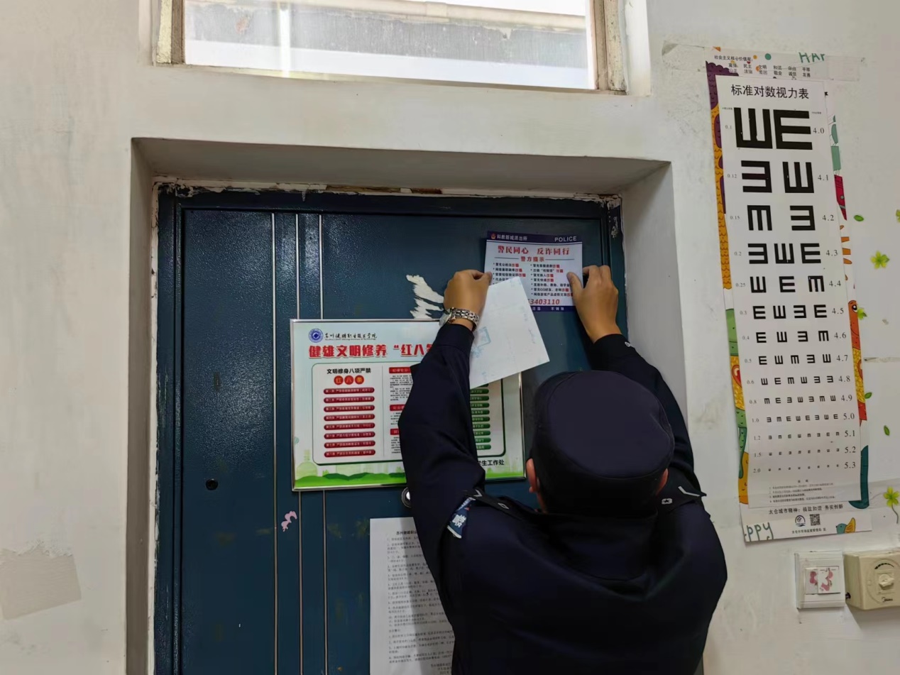活动现场,辖区派出所民警还开展了预防电信网络诈骗宣传,在学生宿舍和教师办公室张贴了防诈提示,针对学生中间出现的兼职刷单、买卖游戏装备和账号、网络交友等诈骗形式,进行针对性宣传和防诈指导。(图/文 王寅珏 审核/王志明)