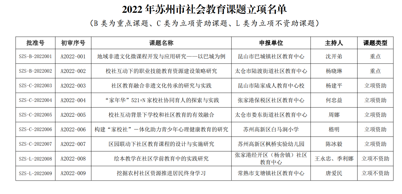10月27日,由苏州市教育局组织评选的2022年苏州市社会教育课题公布,我院今年新入职的青年教师杨晓琳主持的课题《校社互动下的职业技能教育资源建设策略研究》,获重点项目立项。今年苏州市共立项各类社会教育研究课题九项,其中重点课题仅两项。