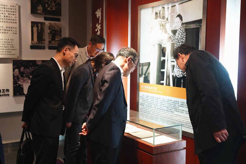 苏霄飞向李文辉详细介绍了吴健雄的生平,在自然科学特别是论证宇称不守恒定律等方面作出的杰出贡献、获得的荣誉,以及关心家乡教育事业等事迹。李文辉对学院依托吴健雄陈列馆,弘扬科学家精神、培养新时代产业技术人才给予充分肯定,提出要进一步加强基地建设力度,发挥基地桥梁与纽带作用,凝聚海内外华侨、侨眷、侨属力量,为社会主义现代化建设作出更大贡献。