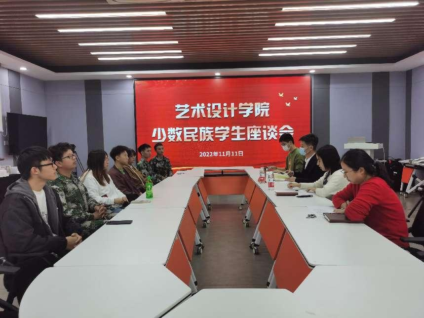 为关心关注我院少数民族学生的健康成长,进一步了解少数民族学生学习、生活状况,拉近与少数民族同学的距离,提升学生教育服务水平,2022年11月11日下午,艺术设计学院在A楼展厅会议室组织召开了少数民族学生座谈会,苏州健雄职业技术学院党委委员、纪委书记赵勇,艺术设计学院辅导员王钰岚、周琳、李宗豫及少数民族学生代表孙明杰、史泽恩、尹君、张迪、王贤、陈将、金顺发出席本次座谈会。会议由王钰岚主持。
