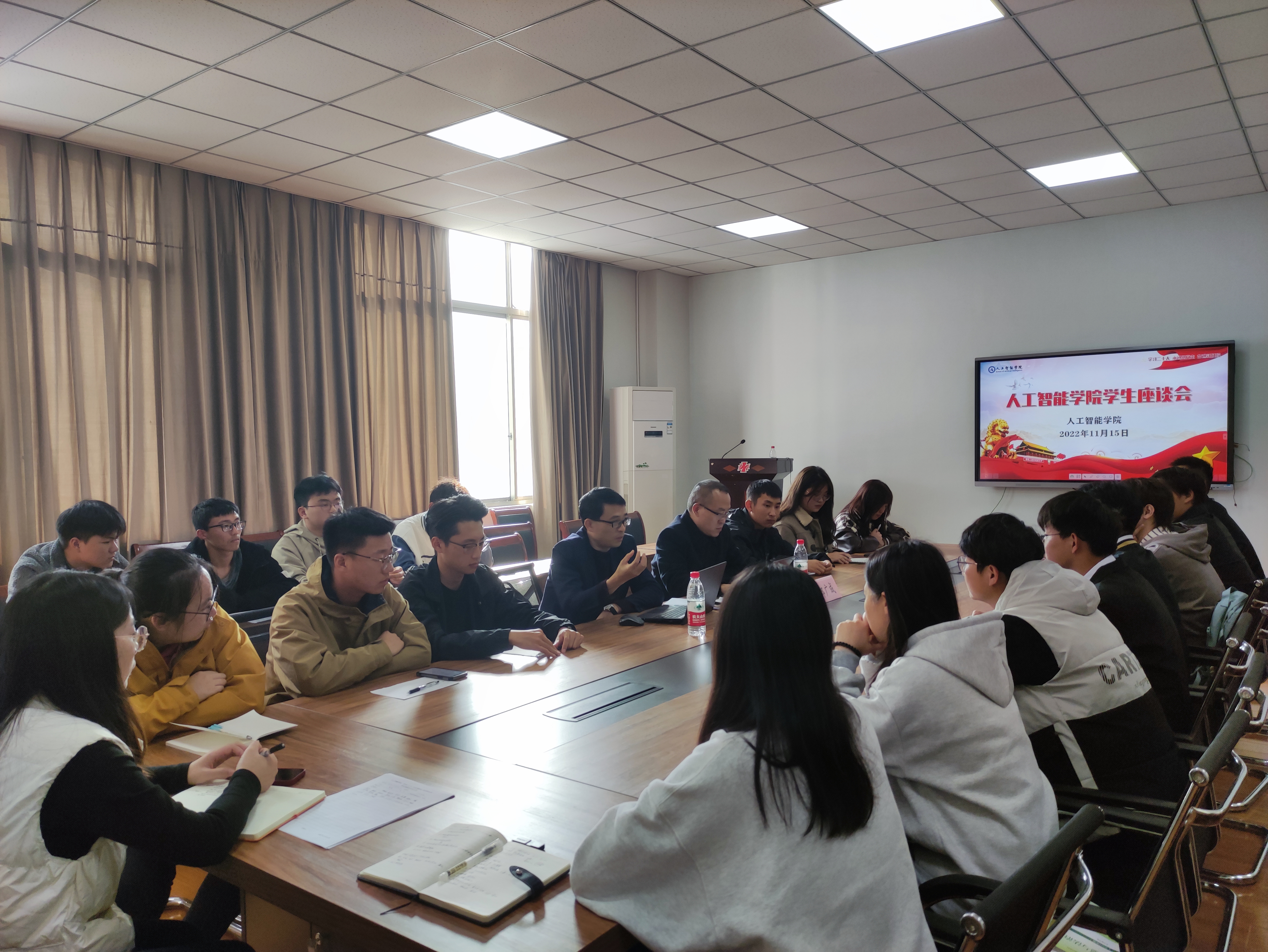 为了进一步服务好学生,提升专业教育教学和学生管理水平,扎实推进我院育人树人工作实效,11月15日下午,人工智能学院在D2-303召开2022级学生代表座谈会,校党委委员、副院长周晓刚出席会议,人工智能学院筹建组组长郑广成主持会议,2022级18位学生代表以及辅导员老师参加会议。