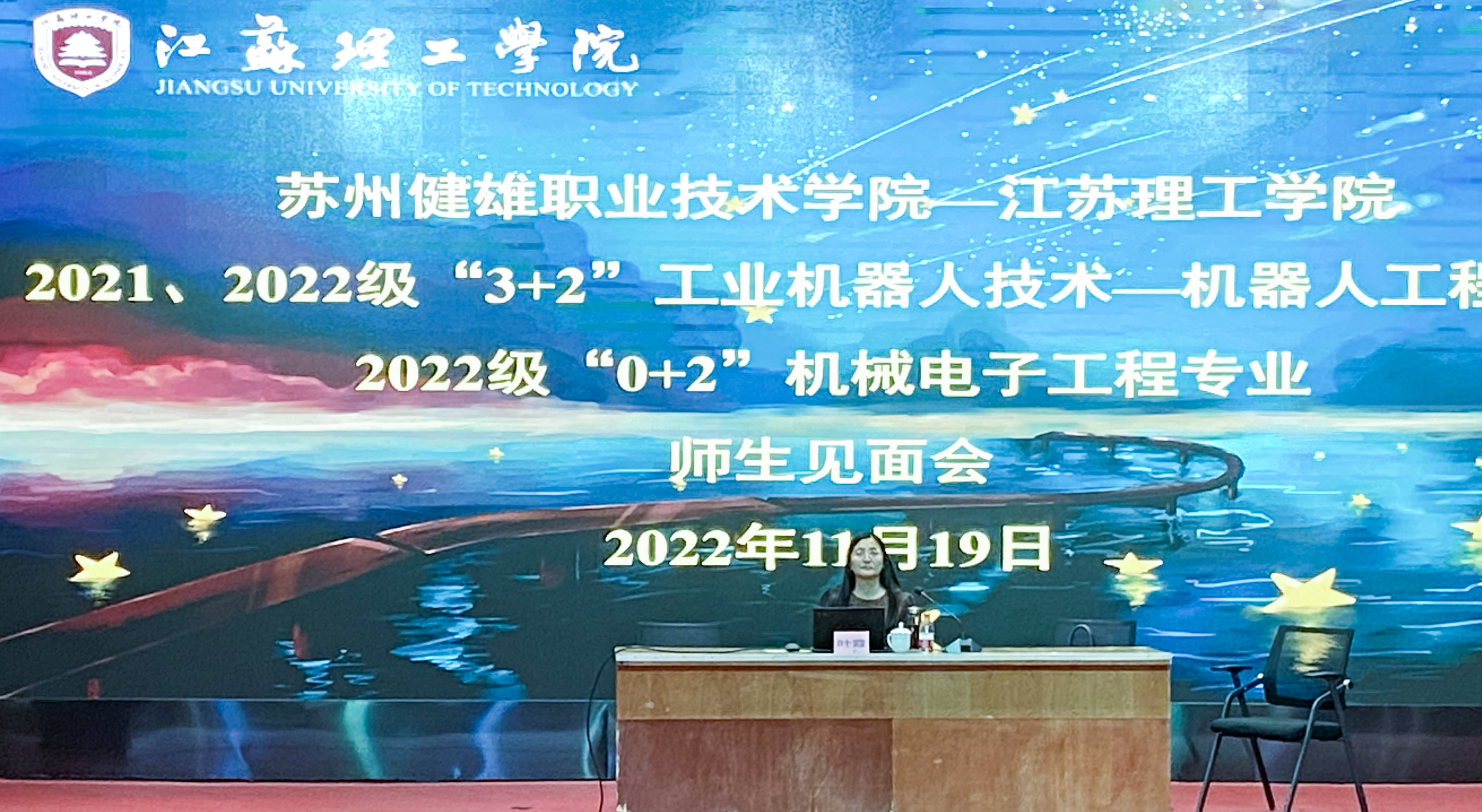 下午,江苏理工学院叶霞院长给2021级、2022级“3+2”工业机器人技术专业,2022级“0+2”机械电子工程专业全体学生开展了专业介绍讲座,并解答了学生们的提问,深度推进学生职业认知与专业认同。
