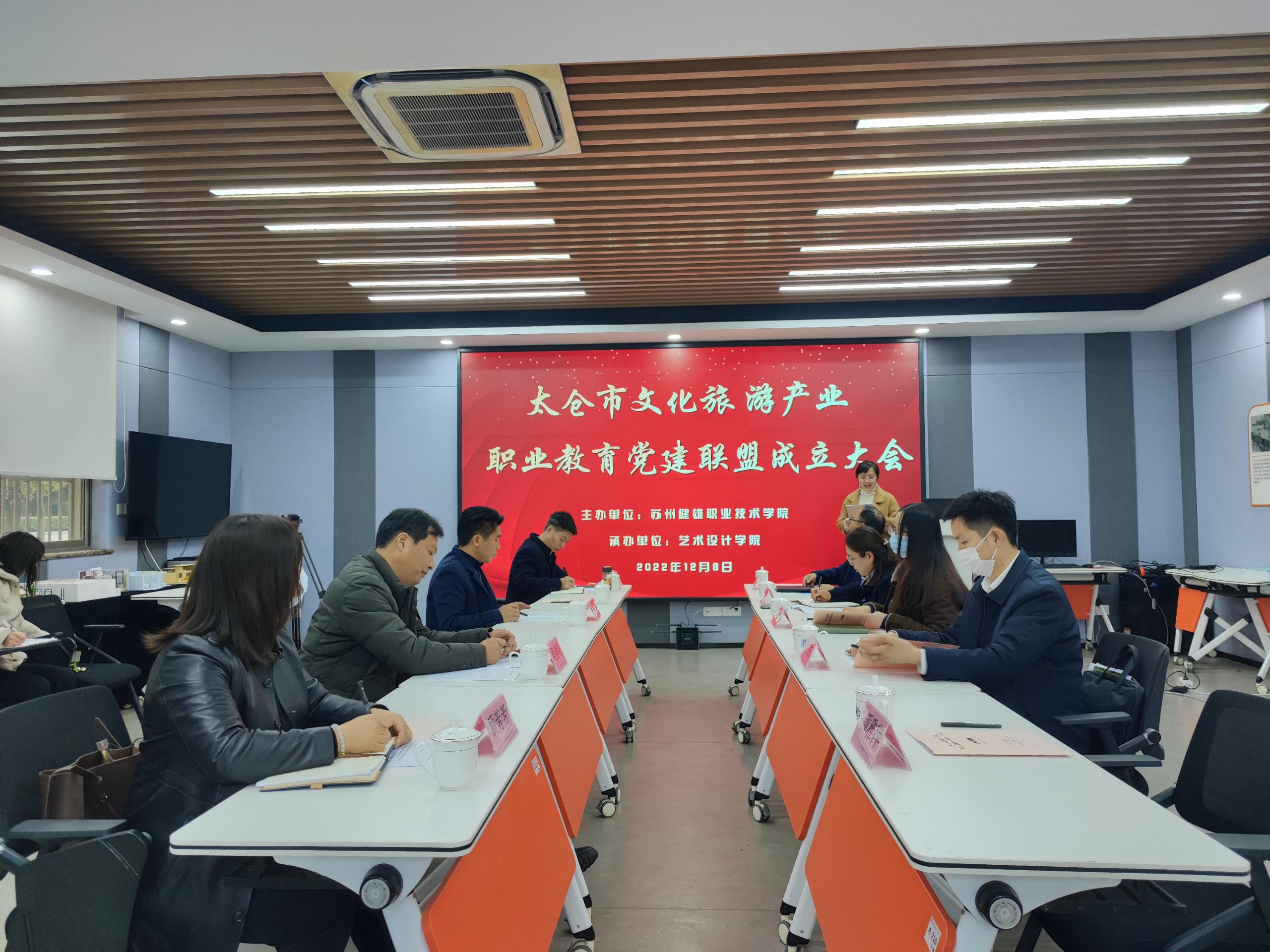 12月8日,太仓市文化旅游产业职业教育党建联盟成立大会在艺术设计学院A楼展厅顺利举行,苏州健雄职业技术学院纪委书记赵勇以及八家联盟成员单位代表出席了本次会议。