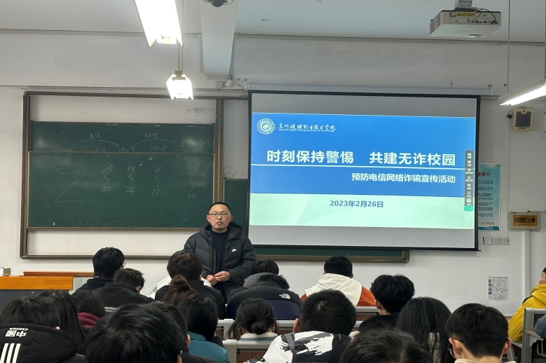活动现场,保卫处负责人通报了近三年我院电信诈骗的总体情况,介绍了诈骗案件的具体类型,希望各位安全信息员在牢固树立防诈意识的同时,继续在班级中加强宣传,提醒同学们时刻保持清醒头脑,不贪便宜、不泄漏个人信息,为建设无诈校园贡献力量。