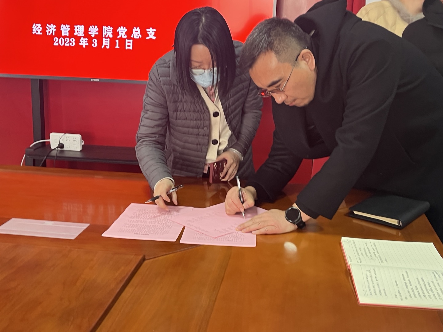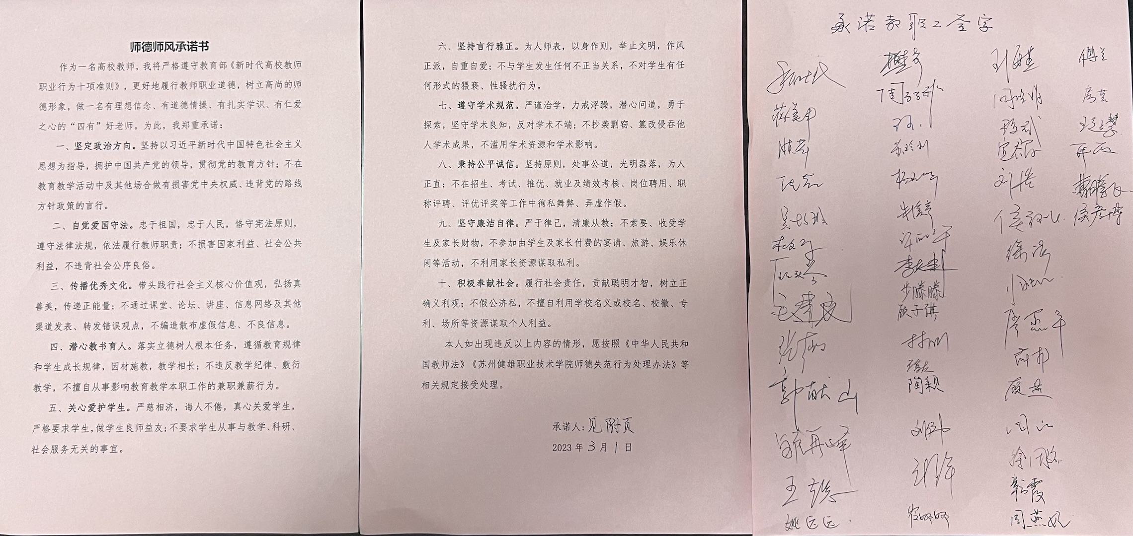 学习会后,再次回顾《新时代高校教师职业行为十项准则》,全体教职工签署师德师风承诺书。