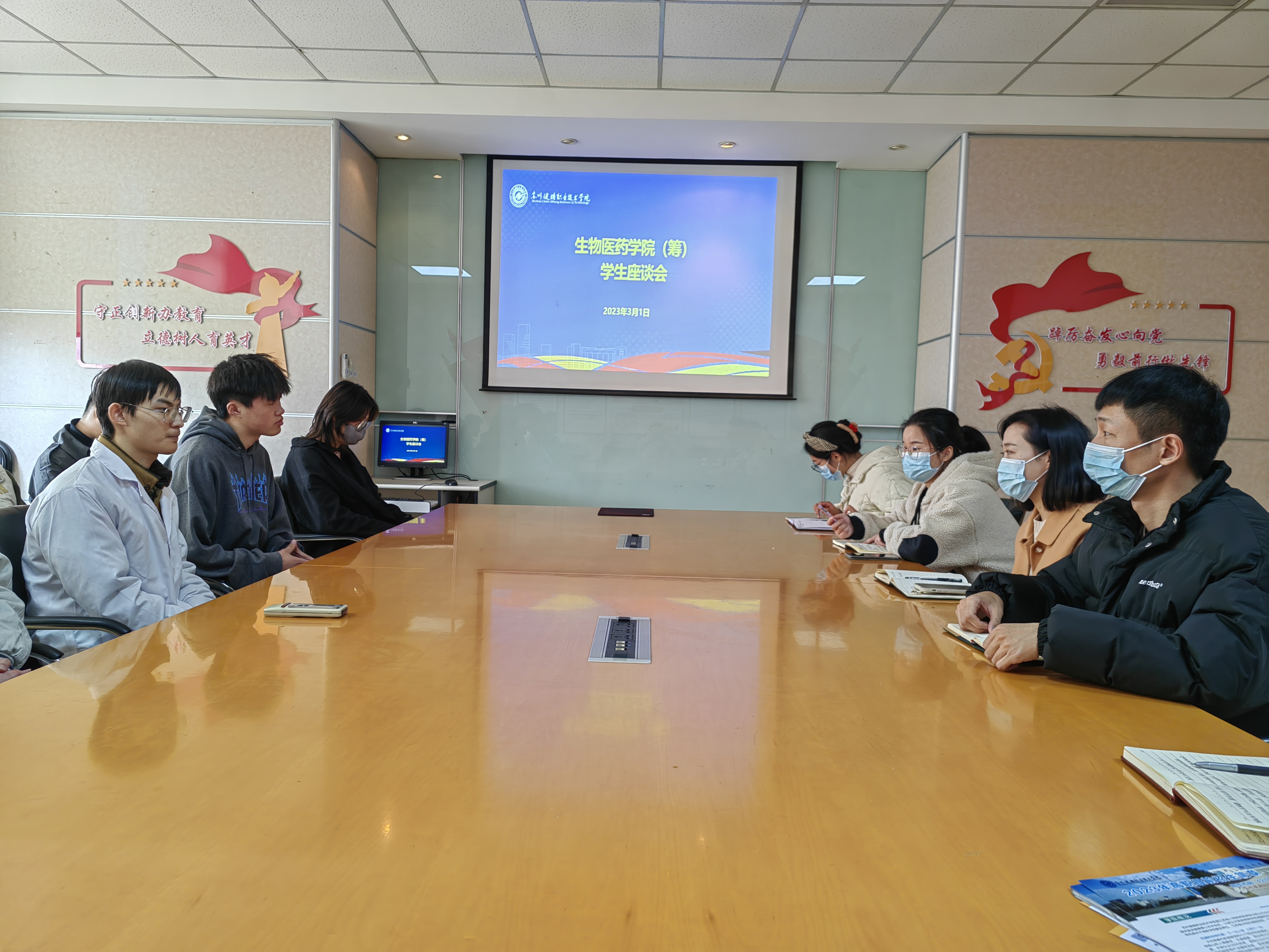 为进一步贯彻落实立德树人的根本任务,关心关注学生健康成长发展,了解新学期开学一周以来学生们在思想、学习、生活等方面遇到的问题和困难,3月1日中午,生物医药学院召开了2023年春学期第一次学生座谈会。会议由李慧老师主持,全体辅导员、学生代表参加。