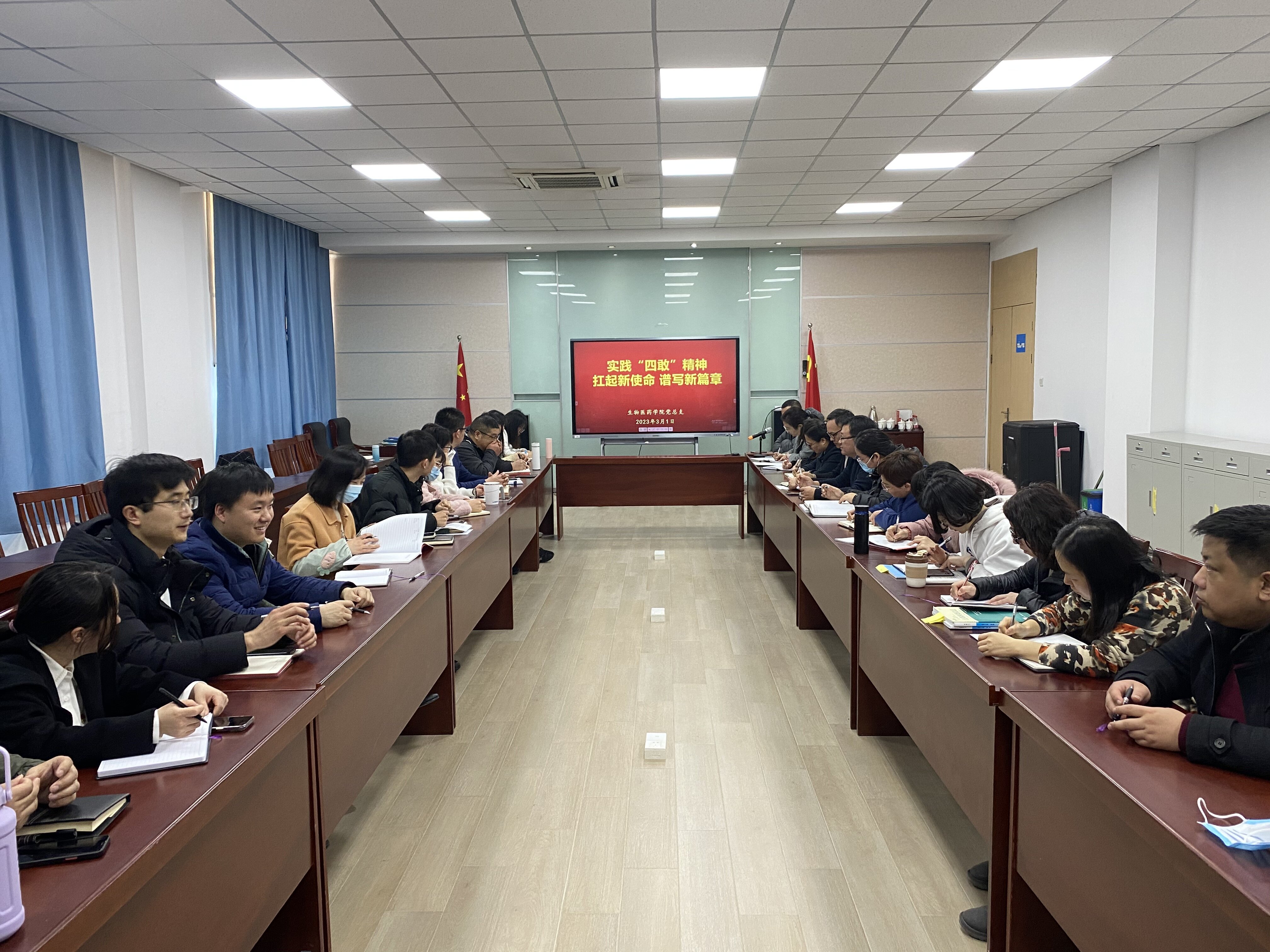 3月1日下午,生物医药学院开展“实践‘四敢’精神,扛起新使命谱写新篇章”大讨论活动。会议由生物医药学院党总支副书记贾红圣主持,全体教职工参加。