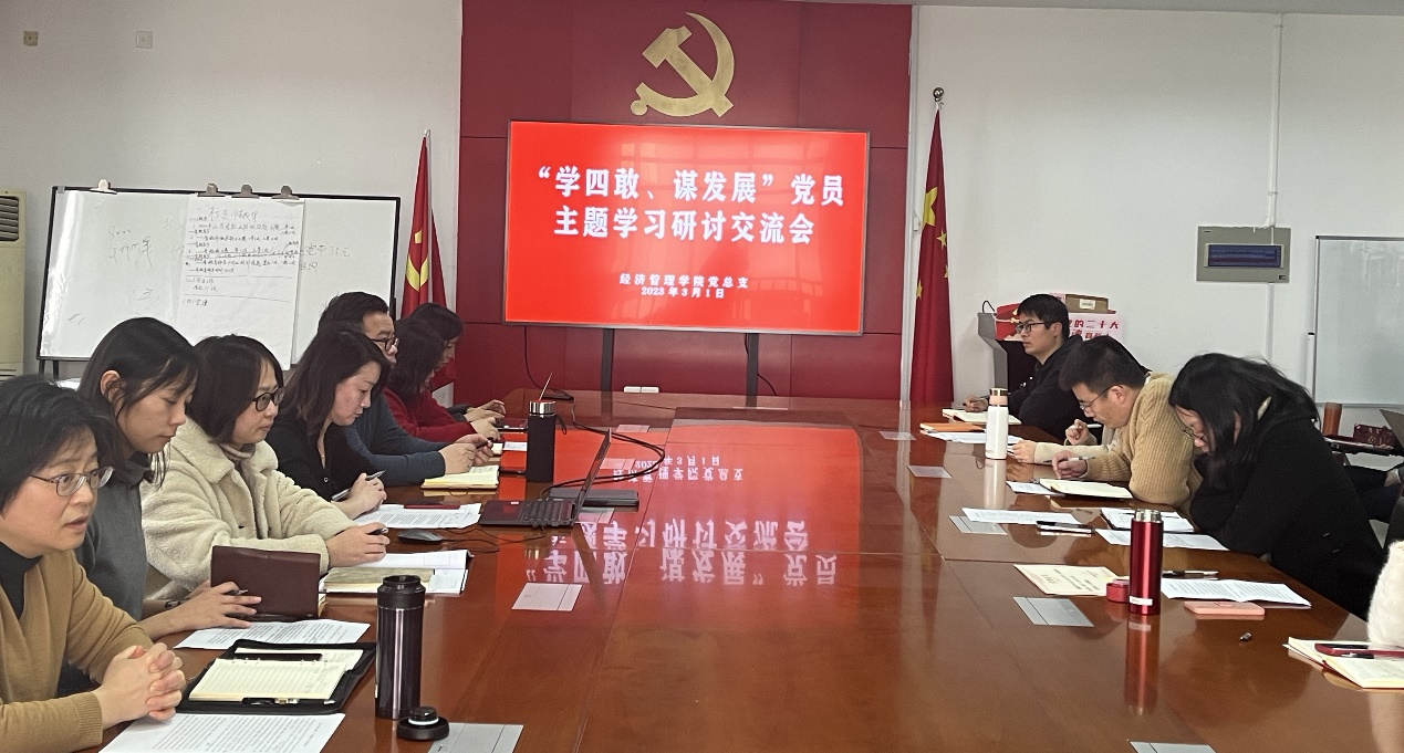 为进一步贯彻落实党中央和省委、苏州市委、太仓市委部署要求,凝聚“敢为、敢闯、敢干、敢首创”的思想共识,3月1日下午,经济管理学院在C3-202会议室举办“学四敢、谋发展”党员主题学习研讨交流会,会议由党总支副书记周丽雅主持。