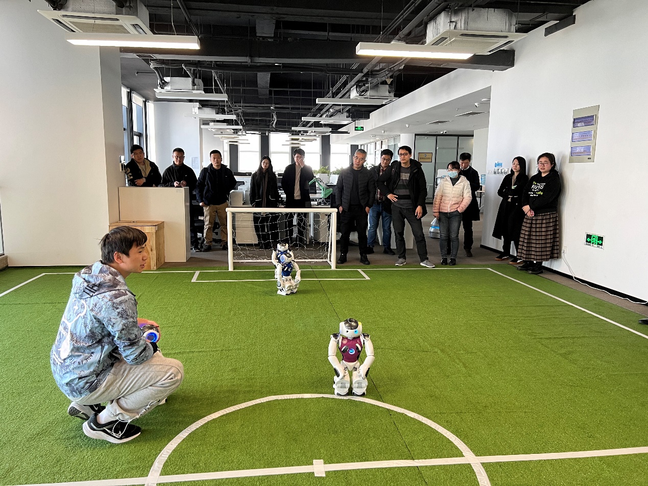 活动中邓若愚博士和安康副教授分别就同济人工智能学院的概况、研究院在各类智能机器人技术上的研究进展做了专题报告。与会人员参观了研究院主持设计的智能车间,并观看了一场别开生面的机器人足球赛。章老师就师资力量提升、科研项目及成果的联合申报、学生参观及竞赛指导等方面与同济人工智能研究院进行了对接,双方表达了开展合作的意愿。参观结束后举行的研讨会上,章老师表达了承办2023年YOCSEF苏州分论坛活动的意愿,就论坛选题进行了探讨。