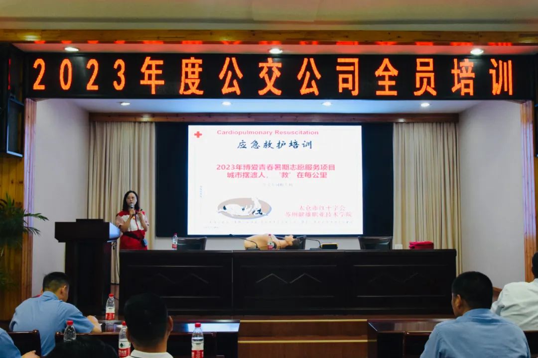 近日,苏州健雄职业技术学院“城市摆渡人,‘救’在每公里”博爱青春暑期志愿服务项目正式启动。活动首站走进了太仓市公交培训中心,苏州健雄职业技术学院红十字会的救护培训师为180名港区、陆渡、新区的公交车司机开展了应急救护培训。
