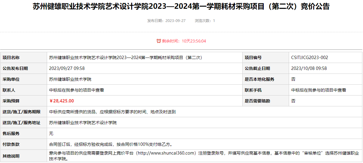 一、意向参与项目的供应商需要登录网上竞价平台(http://www.shuncai360.com)注册登录账号,并填写供应商基本信息,基本信息中的“审核单位”选择苏州健雄职业技术学院。