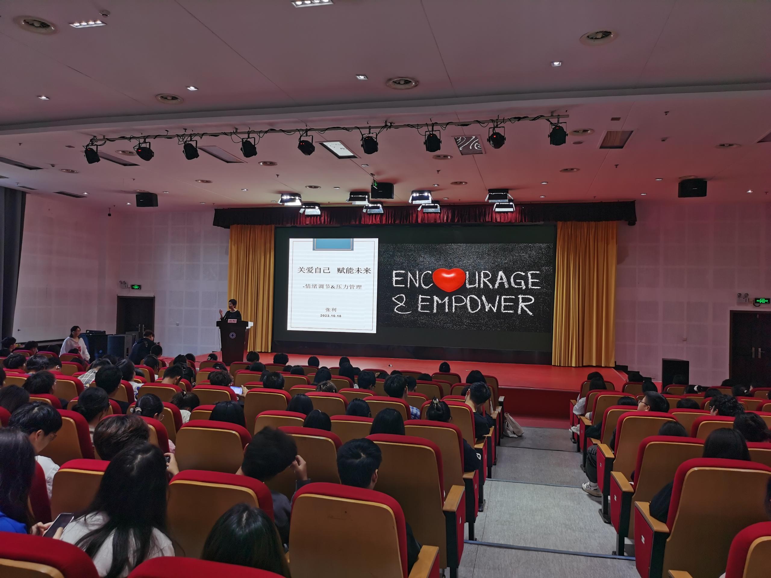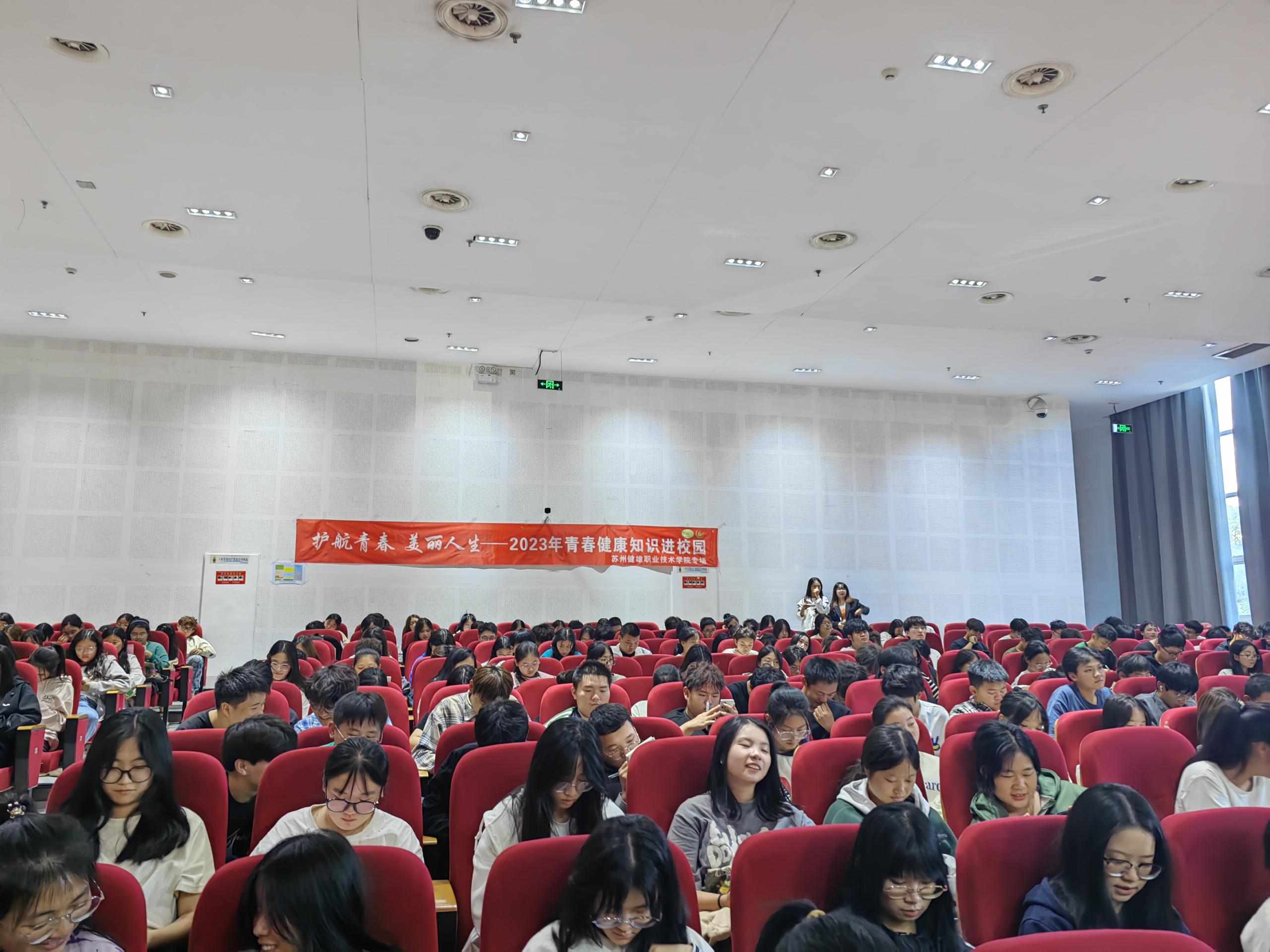 10月18日下午,我院在图书馆报告厅举行护航青春美丽人生——青春健康知识进校园心理健康教育活动,活动以“关爱自己赋能未来——情绪管理&压力管理”为主题。300多名学生参与活动,报告厅座无虚席,本次活动由心理健康中心周友焕老师主持,苏州市心理健康协会专业心理科普讲师张利老师为2023级学生带来精彩的讲解。