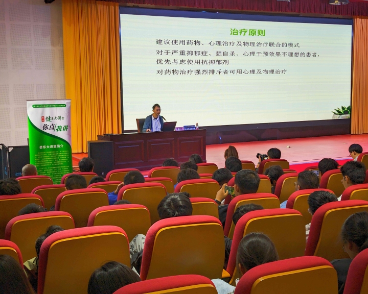 在讲座中,张教授强调了预防和治疗抑郁症的重要性。他指出,保持健康的生活方式、良好的心态和积极的人际关系可以有效预防抑郁症的发生。同时,他也介绍了治疗抑郁症的多种方法,包括药物治疗、心理治疗和光疗等,让学生们对治疗过程有了更全面的了解。