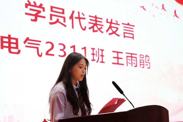 机电CF2312班葛志垚同学和电气2311班王雨鹃同学在典礼上作为本次学员代表进行了发言,承诺会珍惜此次培训机会,做到学有所得,学有所获。