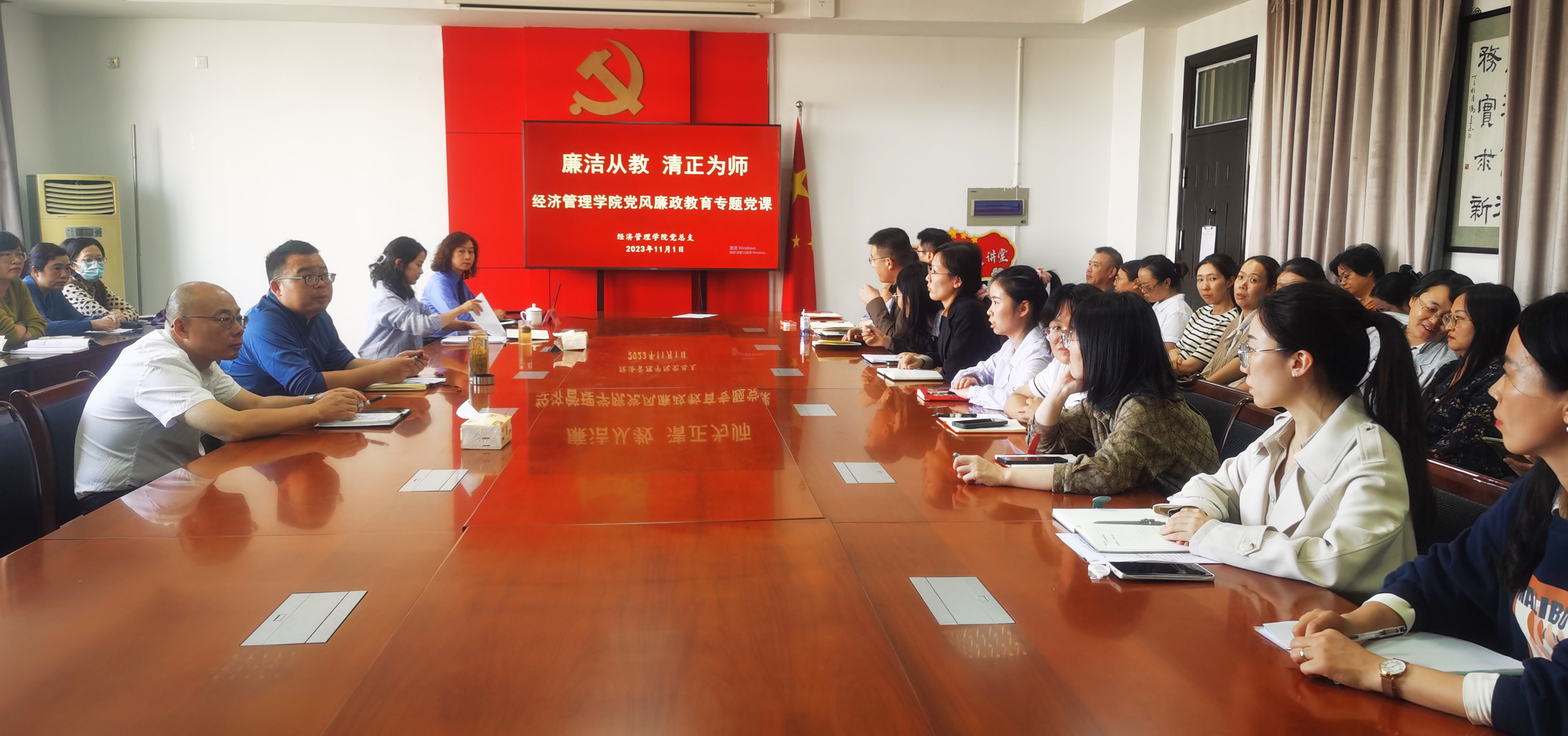 11月1日,经济管理学院党总支邀请太仓市检察院第四检察部主任、法治副校长刘娜娜面向党员教师开展《廉洁从教 清正为师》为主题的党风廉政教育专题讲座,活动由党总支副书记沈晓婷主持。