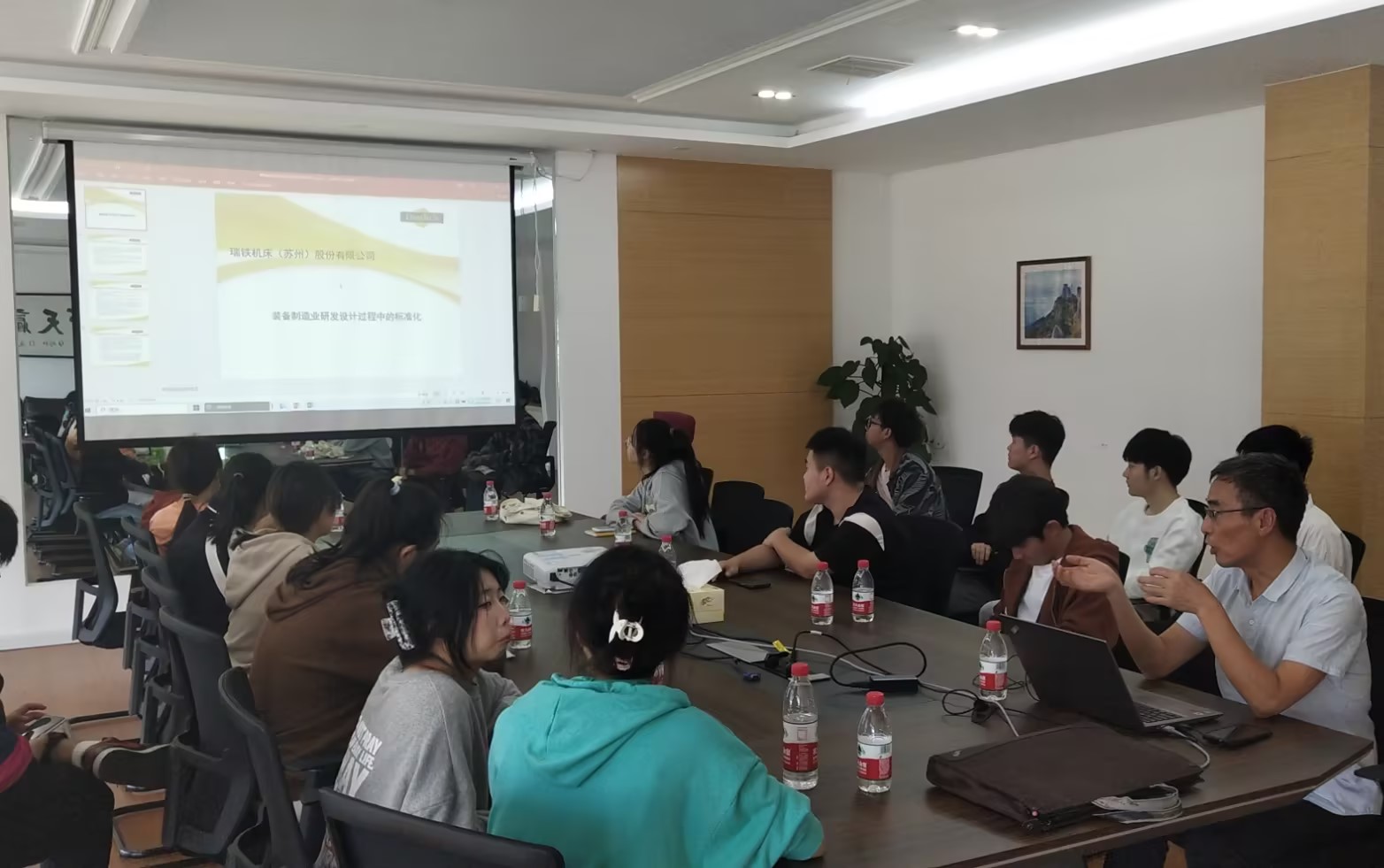 在瑞铁机床公司,负责公司标准化工作的顾经理和左工向同学们介绍了公司在标准化方面取得的成效和发展期望,并表达了急需标准化专业实习生及毕业生的迫切愿望,让大家坚定了专业学习的信心,进一步明确的努力的方向。