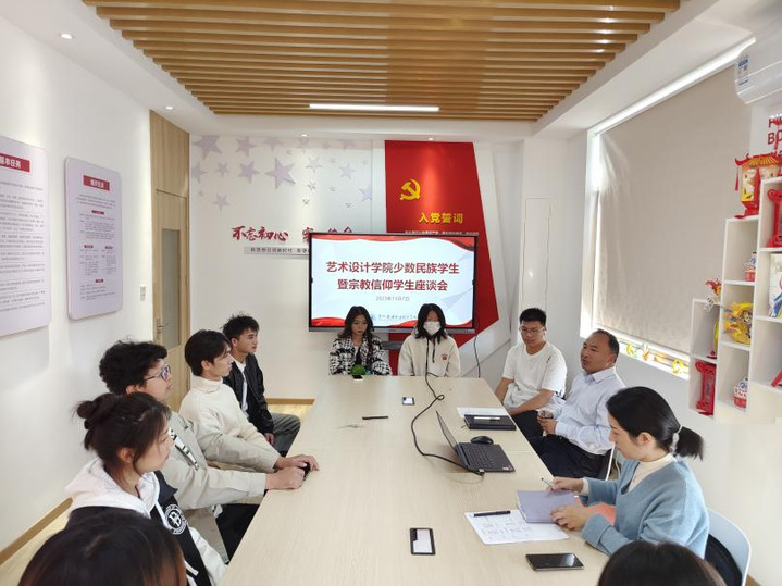 11月7日,艺术设计学院在M5紫薇社区举行了以“紫薇花开领思想,深化了解增互信”为主题的少数民族学生座谈会,艺术设计学院党总支书记陈邦琼、党总支副书记王钰岚、辅导员李宗豫以及少数民族学生代表参加了此次会议。