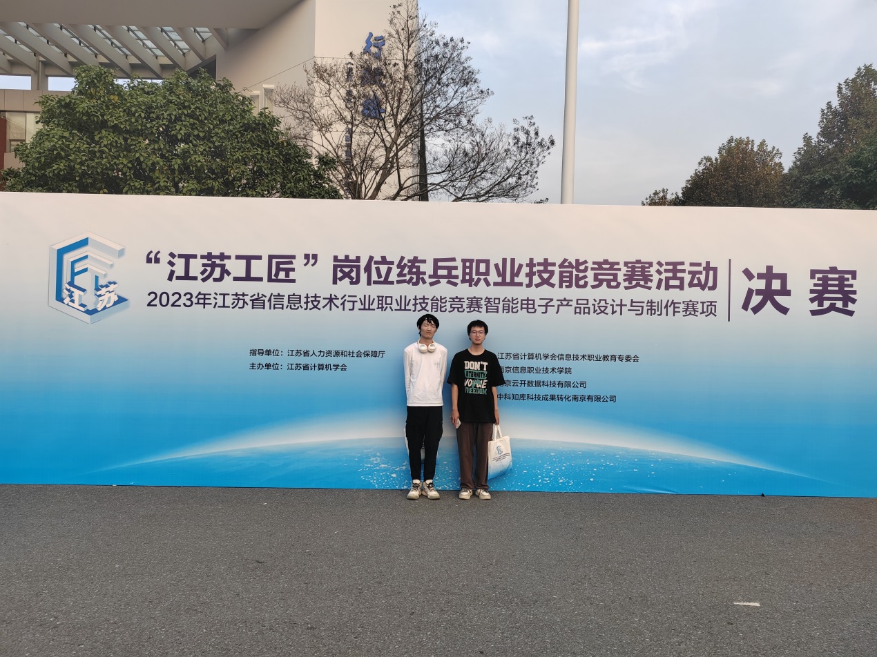11月3日至4日,由江苏省人力资源和社会保障厅指导、江苏省计算机学会主办的2023年“江苏工匠”岗位练兵“智能电子产品设计与制作”决赛在南京圆满落幕。人工智能学院韩自信、李致磊同学在章朋、钱志宏老师的指导下,分别荣获学生组一等奖和二等奖。