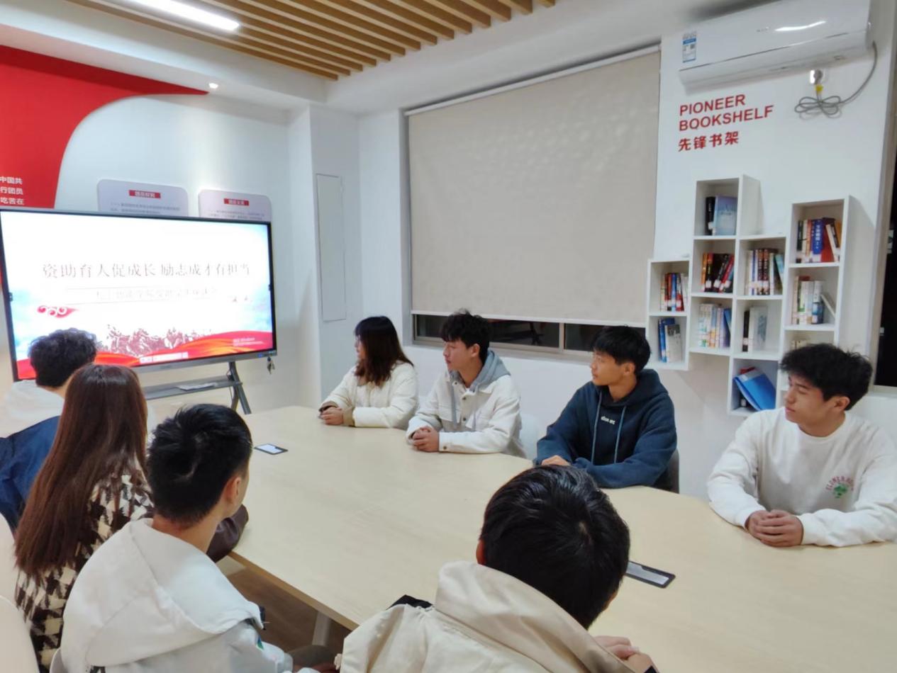几位受资助同学在主持人刘老师的带领下开展了温馨的讨论。大家分别回顾了资助对他们人生的影响,感慨万分。有一位同学强调,资助对他来说不仅是经济上的支持,更是一份温暖和对未来的信心,让他有力量克服困难,努力向前。
