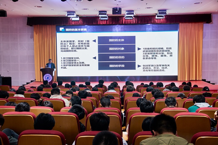 此次国防教育主题讲座以“增强国防意识,争当爱国先锋”为主题,从史料中对“国防”两字的记载到2020年《国防法》的修订,逐一分析国防定义的变迁。雷腾分别从时间维度和地域维度,用鲜活的案例讲解国防的重要性,并期望在校大学生,要学好国防知识,厚植国防精神,用自觉的行动支持国防建设。