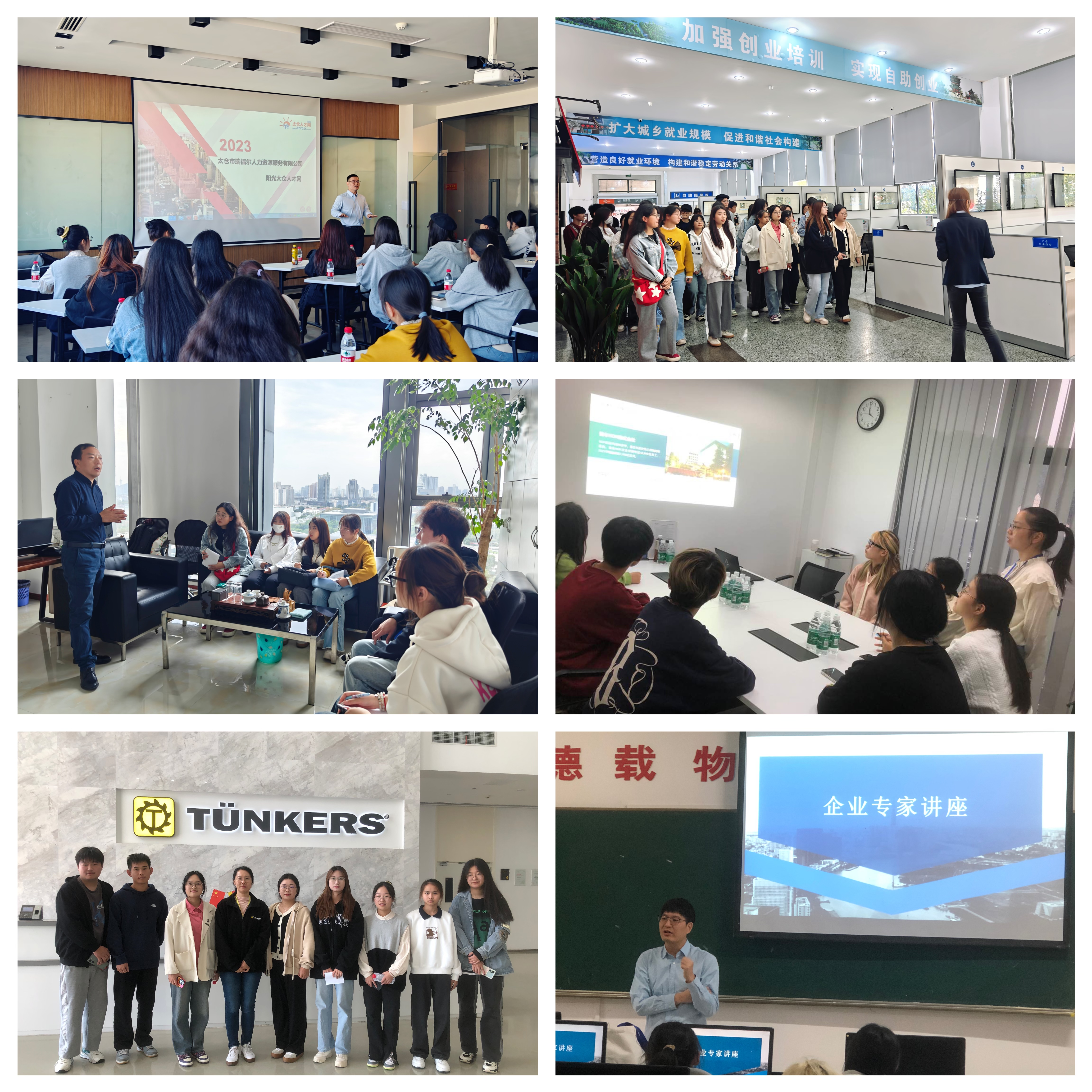 11月8日上午,学生先参观了太仓瑞福尔人力资源有限公司。该公司负责人李金总经理详细介绍了公司的主要业务及发展历程,鼓励学生热爱专业,树立目标。随后,学生参观了太仓市人力资源公司承建的太仓市零工市场,感受招聘市场现场氛围。