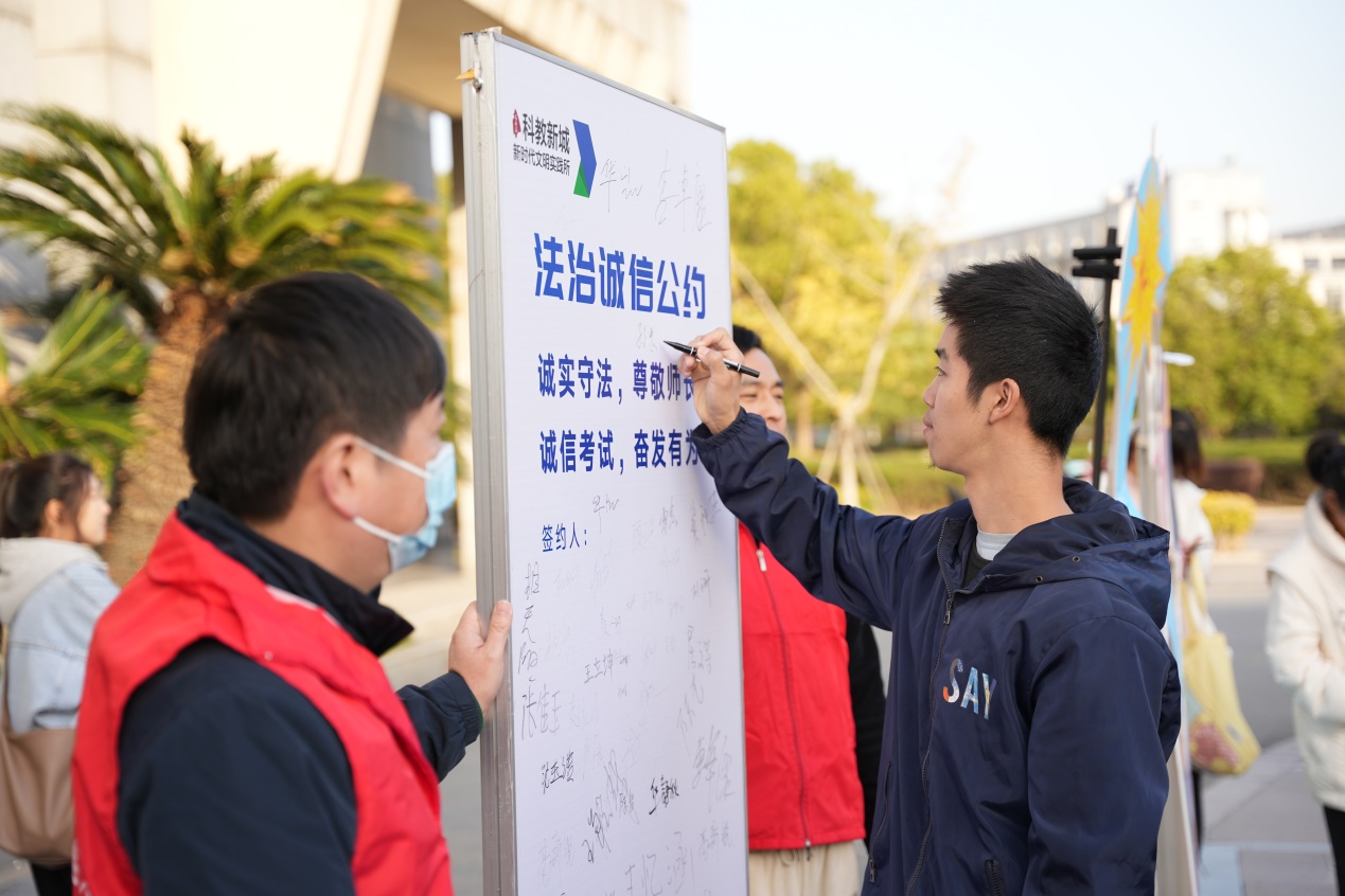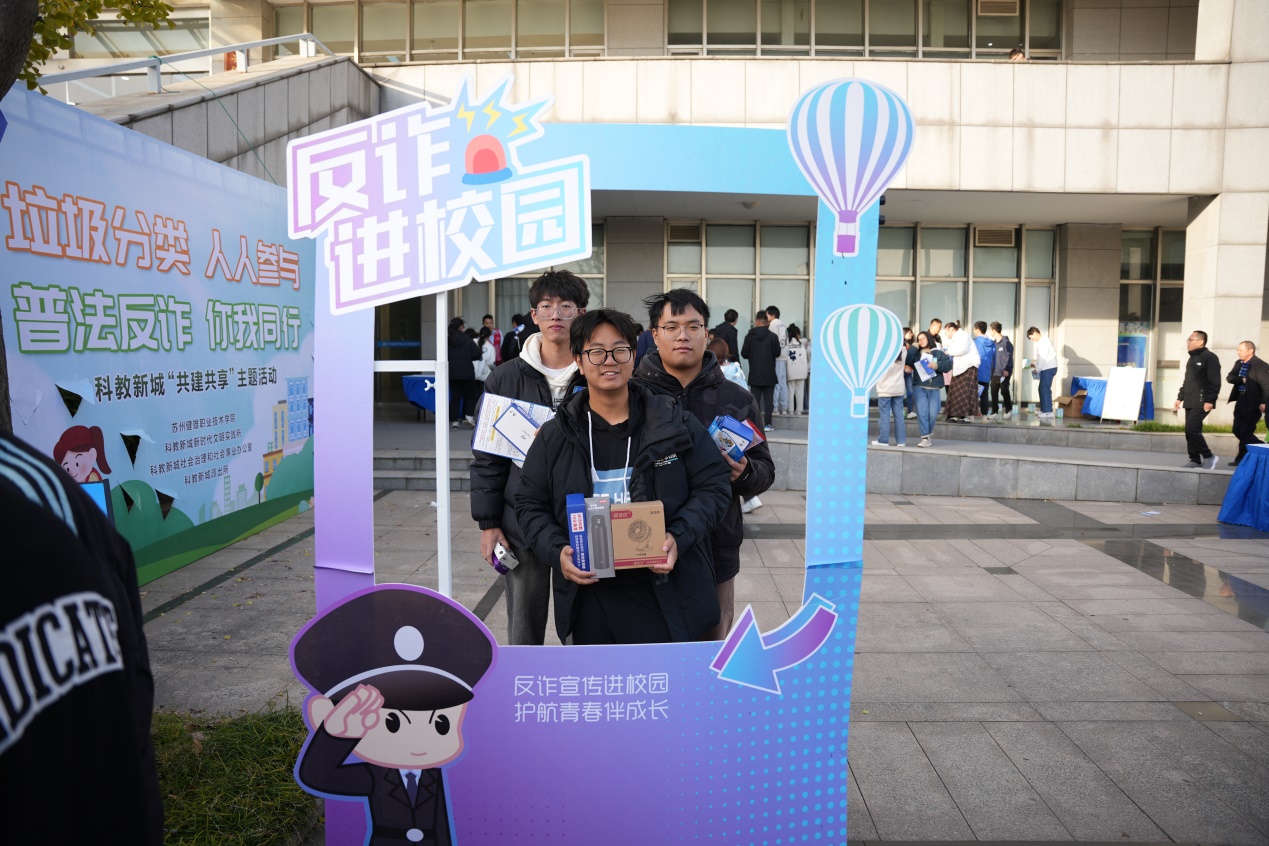 为丰富校园文化生活,增强学生安全意识和法治观念,营造平安和谐、整洁美丽的校园环境,11月17日,我院联合科教新城共同开展“共建共享”主题活动,活动包括预防诈骗、诚信普法、垃圾分类等教育宣传内容,科教新城新时代文明实践所、社会治理和社会事业办公室、派出所等单位,我院部分学生代表参加本次主题活动。
