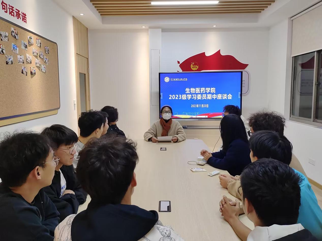 为促进学院教学高质量发展,有效掌握教学运行状况、学生学习情况,生物医药学院于11月20日在紫薇社区召开了2023级学习委员期中座谈会,辅导员贺小艳主持会议,学习部及2023级各班学习委员共同参加。