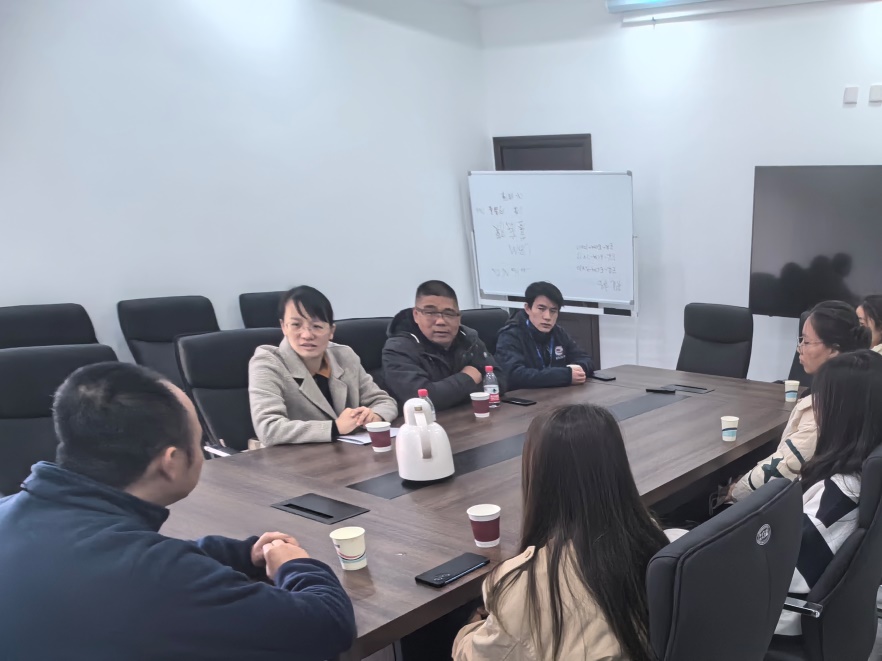 卓阮医疗的人事经理和现场主管进行了热情接待。现场主管带领大家参观了学生实习场所,介绍了学生实习岗位和工作内容。随后人事经理安排了4名实习生和新入职的3名毕业生进行座谈,通过交流了解学生工作和生活情况,对实习生的困惑进行解答,对毕业生的未来提出期望,并与企业人事就双元人才培养、教师企业实践、企业用人需求等方面达成合作意向。