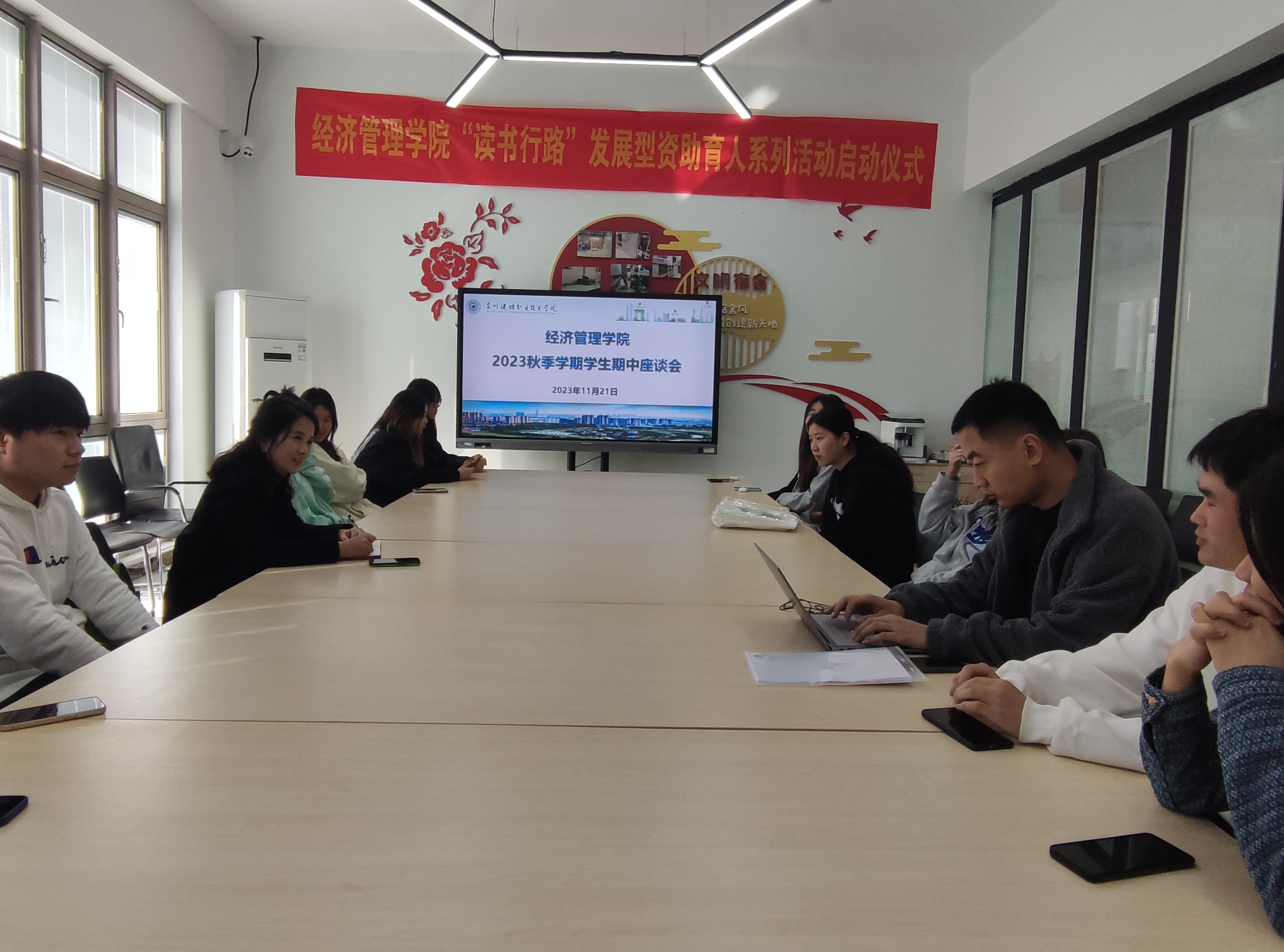 为全面了解本学期教学运行状况,及时发现学生在学习生活中存在的问题,进而规范教学管理,促进教育教学质量提高。经济管理学院于11月20日、11月21日分别在教室及紫薇社区开展2023秋季学期学生期中座谈会,出席本次座谈会的有经济管理学院院长樊奇、党总支副书记沈晓婷、副院长傅兰、辅导员代表以及经济管理学院各班学生代表。