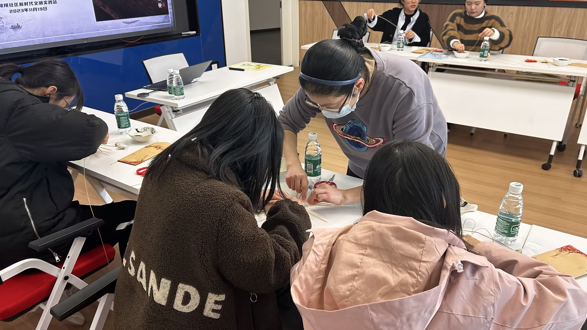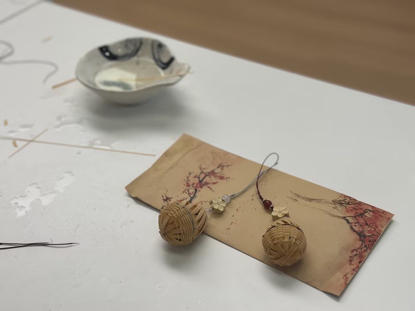 竹编工艺有着悠久的历史,非遗手工艺体验,是一项充满趣味的活动,为传承传统技艺,弘扬国风文化。活动现场,参加体验的同学们在工作人员的引导下领取活动所需材料,随后社区工作人员为大家播放了竹编视频,讲解了竹编工艺的历史、制作流程以及主要特点。在对竹编工艺有了一定了解后,同学们也迫不及待地动手去做属于自己的竹编作品。竹编工艺看似简单,却是极其的繁琐,几根纤细的竹条在穿、挑、压间,宛如一根根飘逸的丝带,匠心的态度、耐心的编织,最终,参与的同学都出色地完成了属于自己的竹编作品。