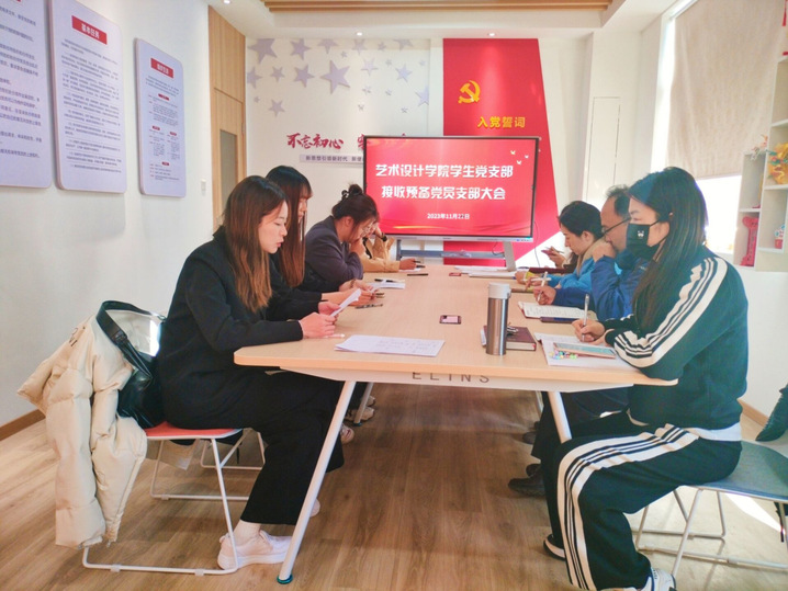 11月22日,艺术设计学院学生党支部在紫薇社区党员活动室召开支部会议,讨论接收预备党员,会议由学生支部书记周琳主持,艺术设计学院党总支书记陈邦琼、副书记王钰岚受邀参会并指导。