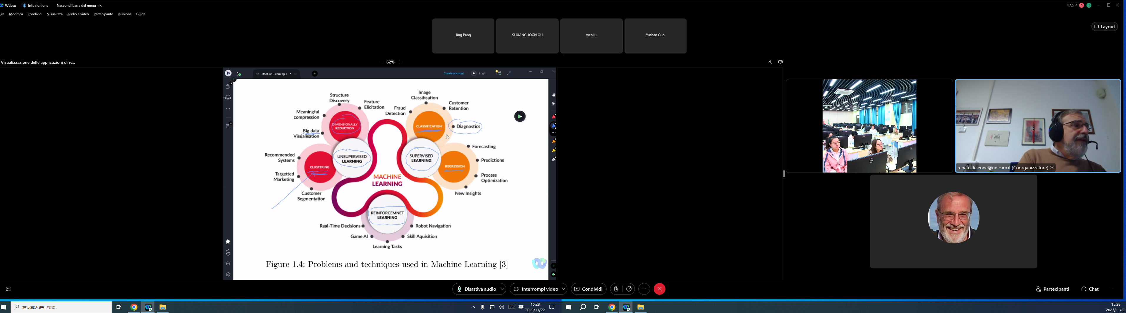 11月22日,意大利卡梅里诺大学以“大数据科技”系列-机器学习入门为主题的讲座在我院通过线上形式举行,主讲人为雷纳多·迪·里奥内(Renato De Leone)教授,国际留学生、人工智能学院师生等100余人参会学习。