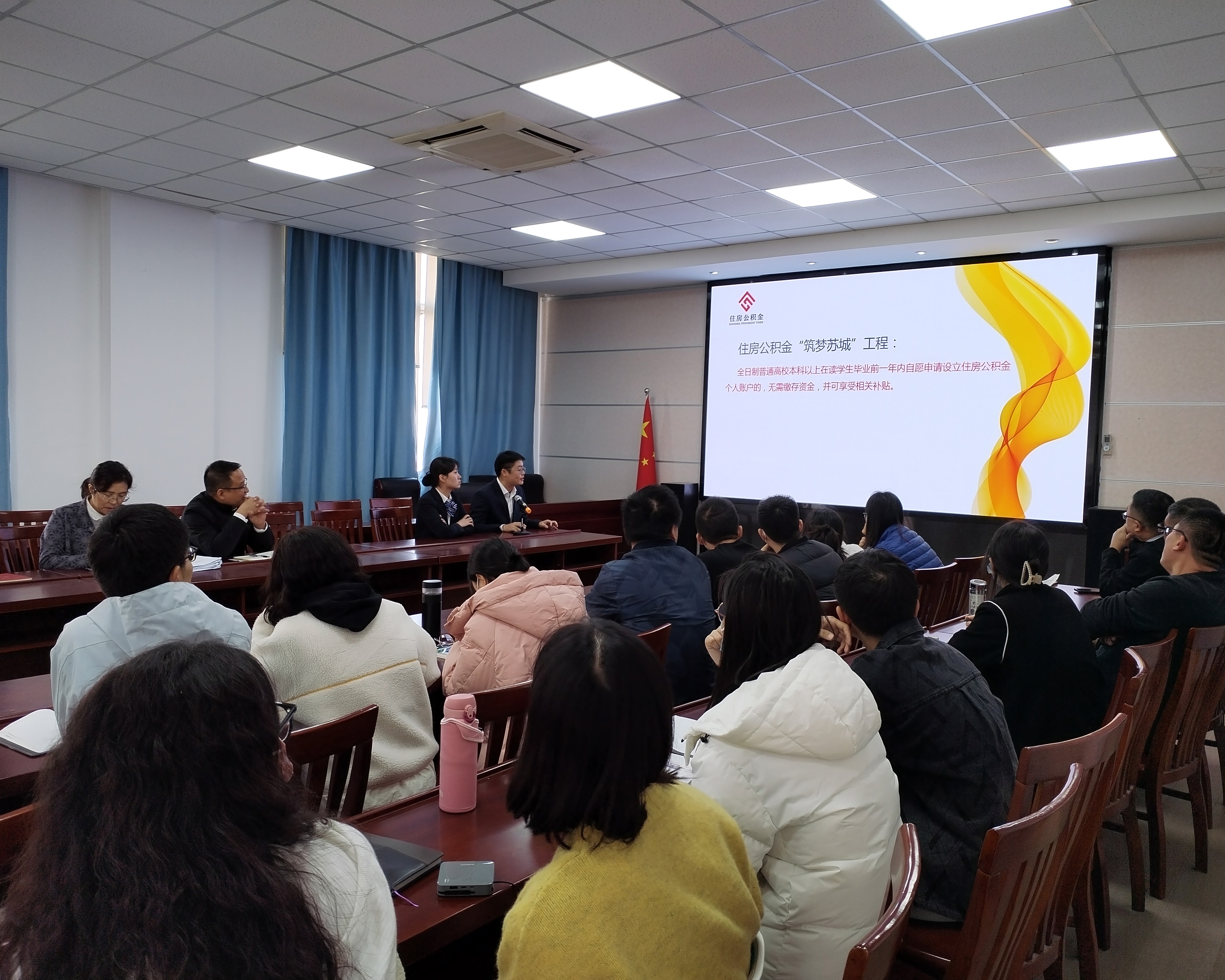 11月22日下午,人事处邀请了太仓市住房公积金中心相关科室工作人员进校园宣讲公积金政策,生物医药学院、经济管理学院全体教职工参与了本次活动。