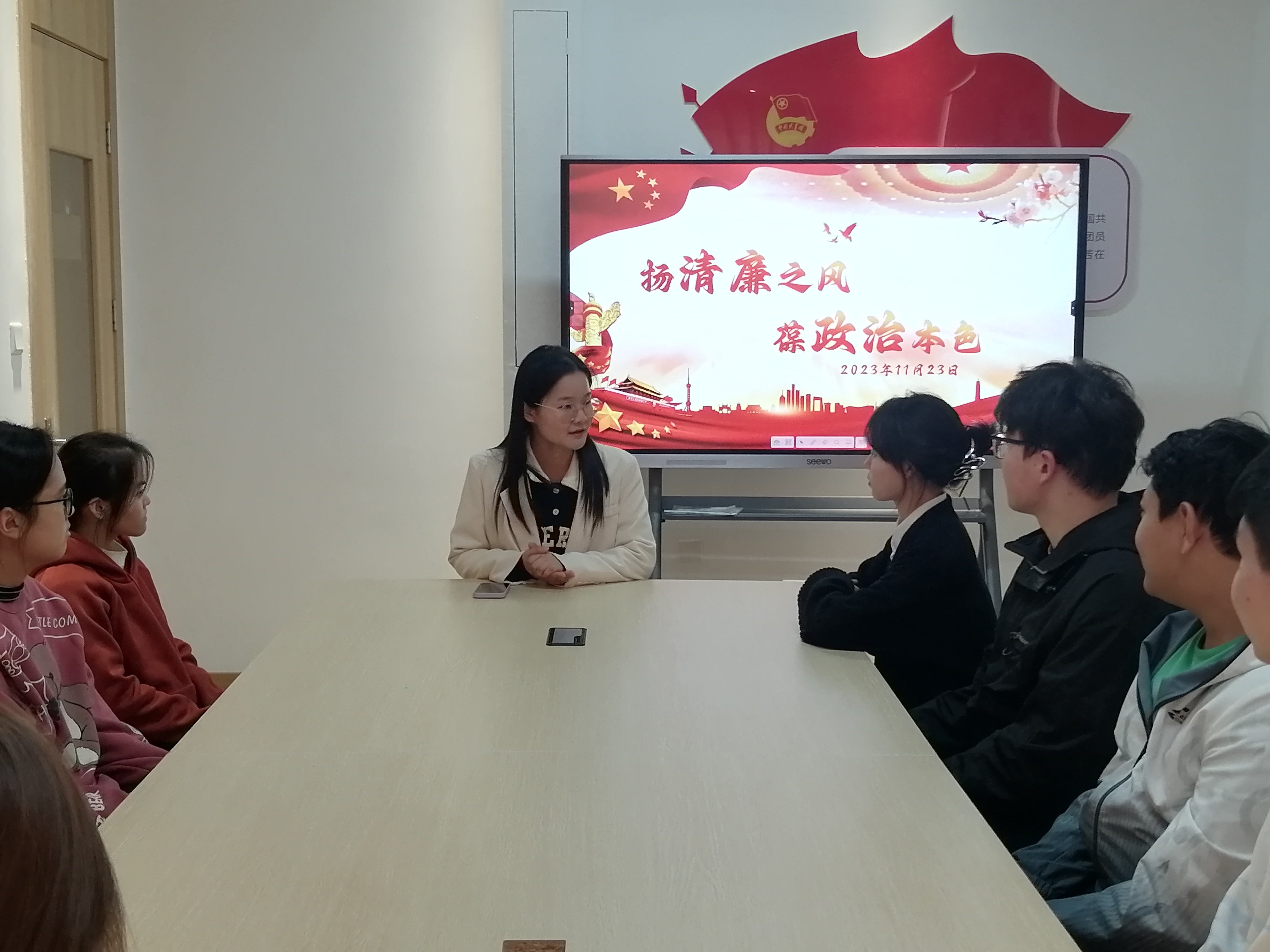 本次活动邀请了健雄学院“廉心薇语”微型党课获奖者张玉菲主讲。张玉菲以“扬清廉本色 葆政治本色”为题,通过讲述村干部爷爷的“廉洁”故事,展现了当代青年大学生对新时代“廉洁文化”的理解。