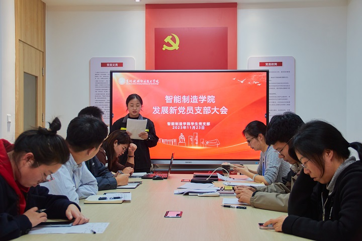 11月23日,智能制造学院在“一站式”学生社区开展2023年党员发展支部大会。会议由智能制造学院学生党支部书记赵璐主持,全体学生党支部同志及入党介绍人参加。