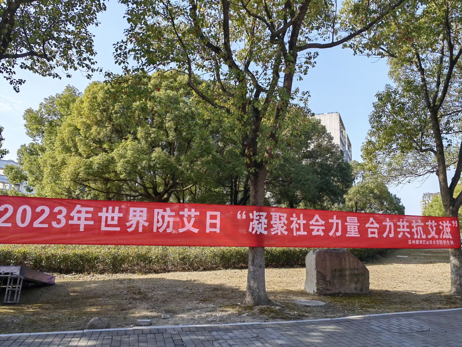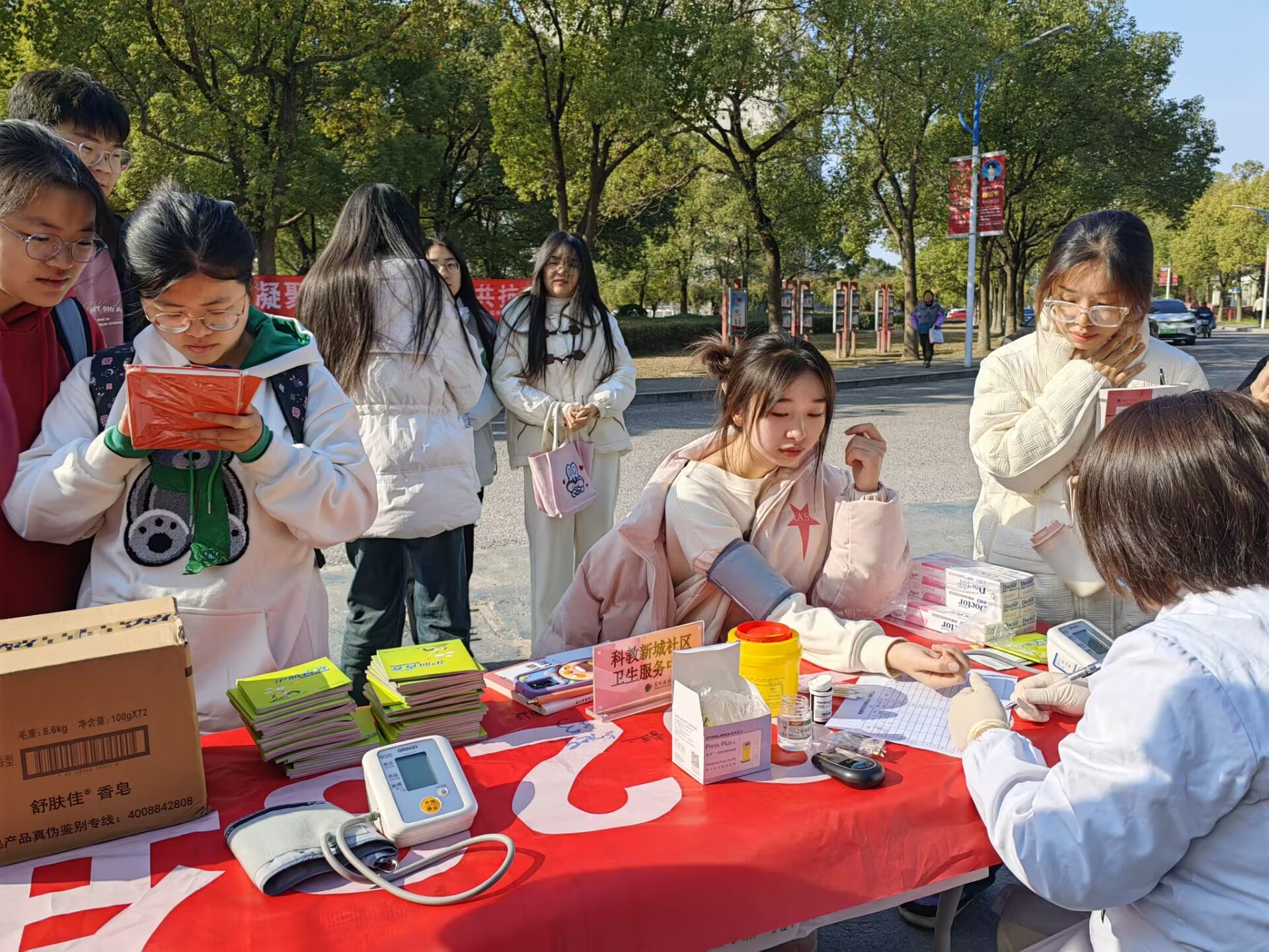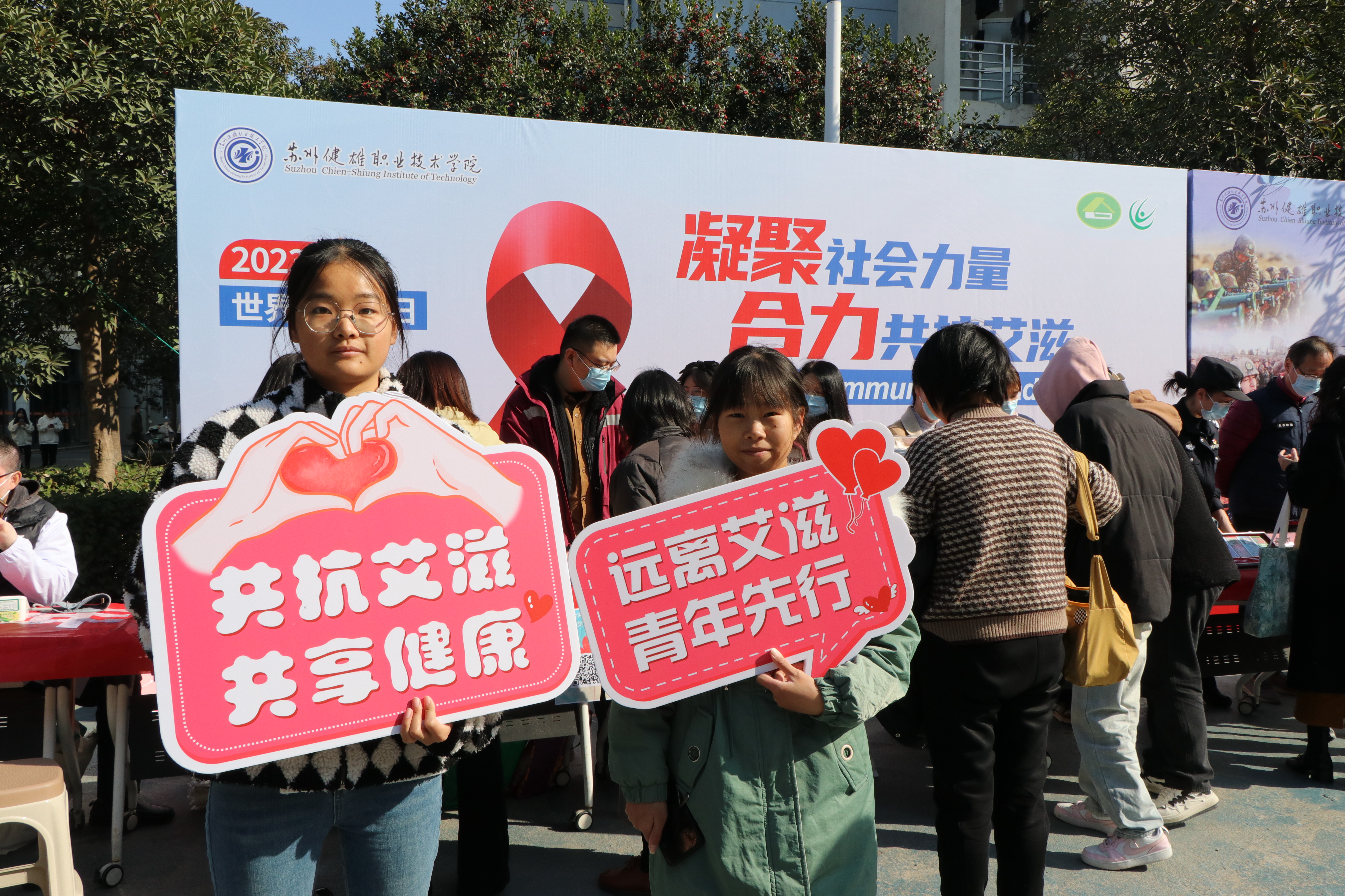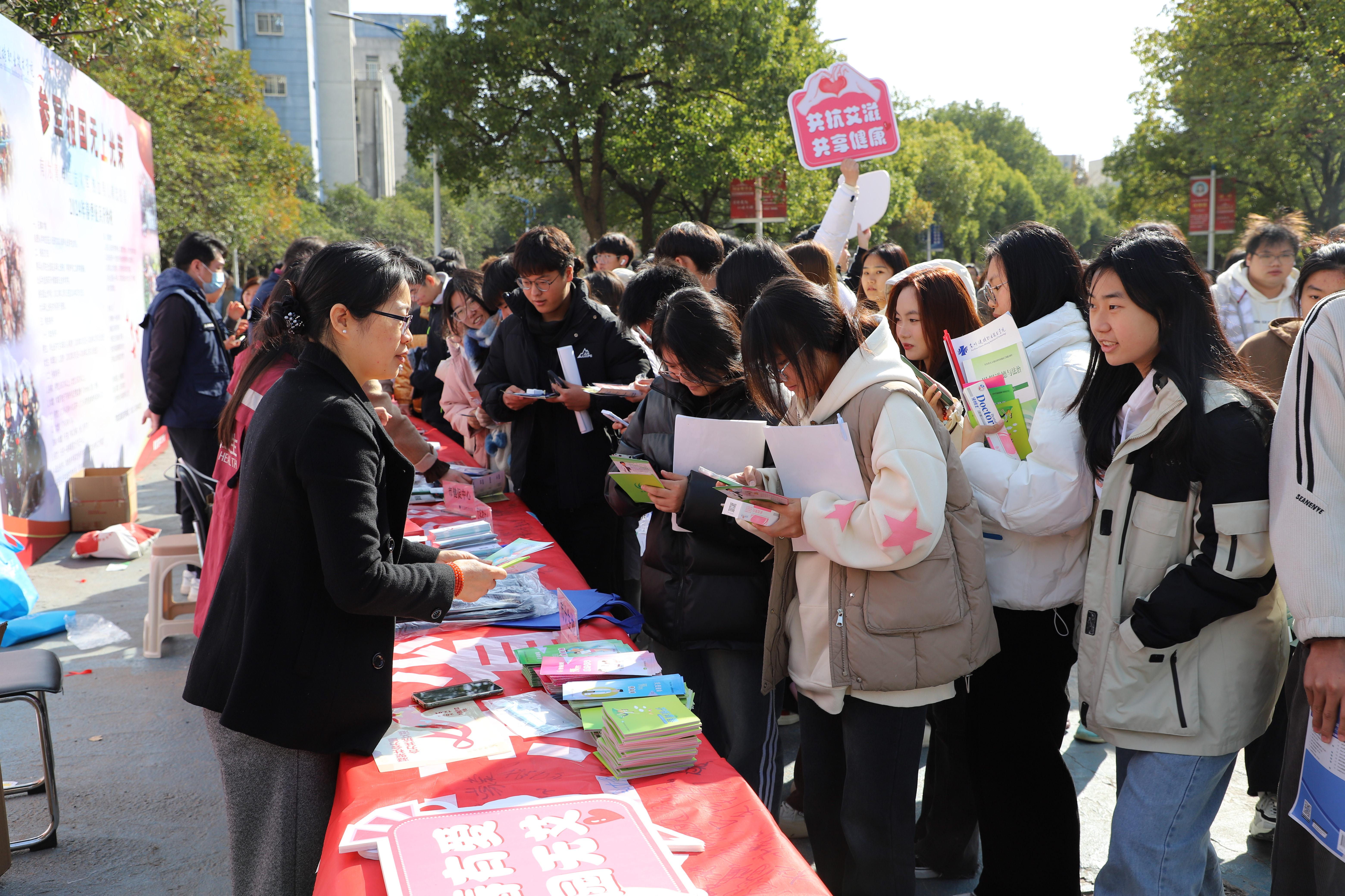 11月30日中午,由学院主办,市卫生系统、市公安系统等单位共同参与的“为爱而生,让艾远离”摆点宣传在M1楼前进行。通过展架横幅、签名倡议、宣传手册发放、有奖问答、现场测血压血糖等丰富多彩的形式宣传普及艾滋病知识。活动得到了同学们的积极响应和参与。