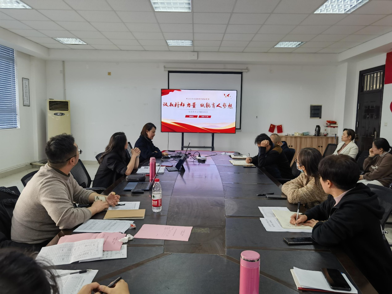 会议第一项议程由总结和布置近期各项工作。周丽雅首先总结了近期各项常规工作情况,包括近期由马克思主义学院主持举行的书法大赛、《青春遇见思政课》的参赛举办情况以及马克思主义学院参加校党史知识大赛、体育组参加的体能大赛获奖成绩情况。同时介绍了近期教务工作、行政工作和党务工作的开展情况。