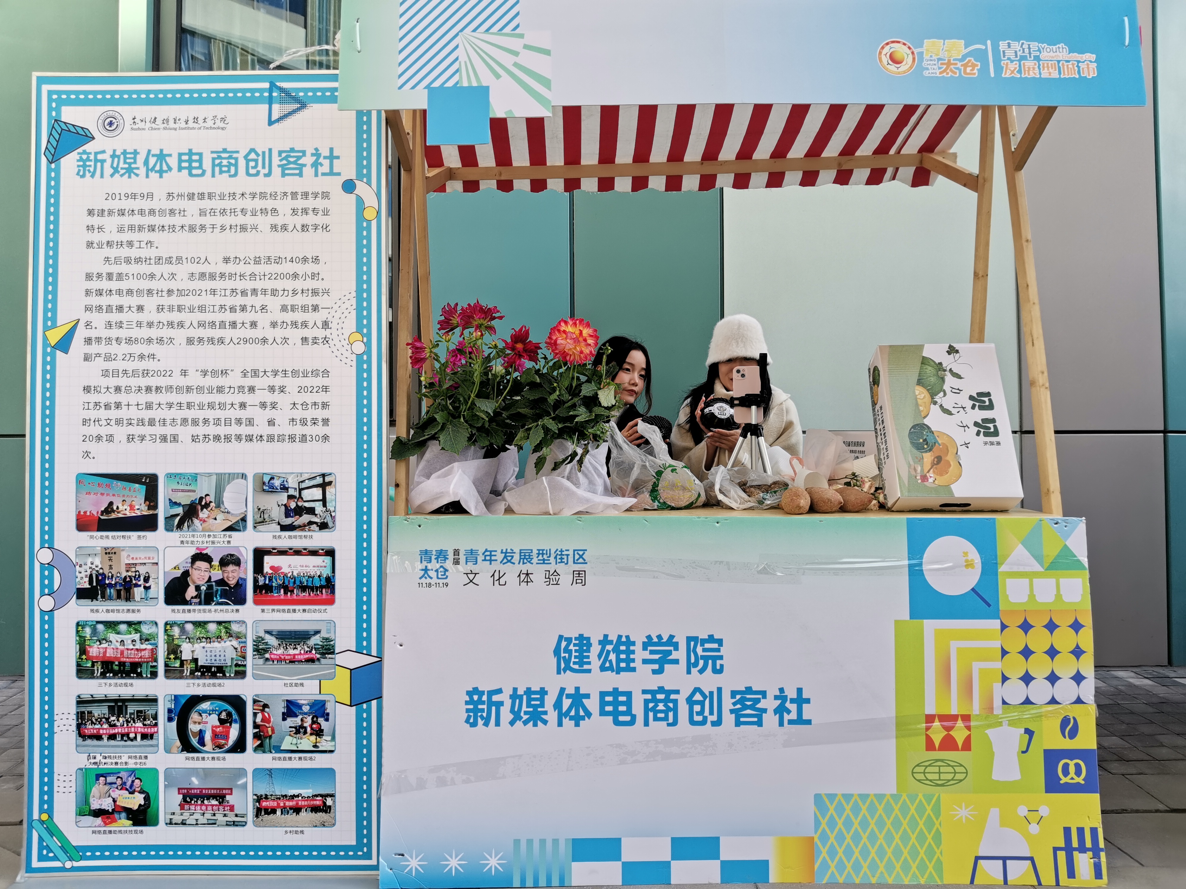 11月18日,经济管理学院新媒体电商创客社受邀参与太仓首届“青年发展型街区”文化体验周活动,活动在娄江新城青草巷举行。