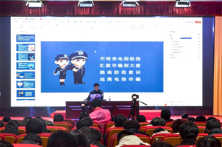 当地派出所民警从防范电信诈骗安全内容入手,向学生详细讲解了防范电信诈骗的各种常见套路,告诫同学们不贪、不点、不理、不转帐,提高反诈意识,筑牢安全防线,保护自己的信息安全和财产安全。