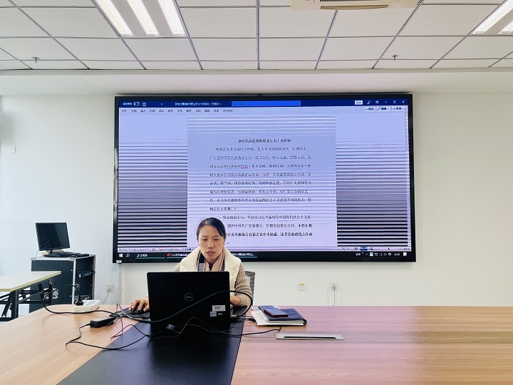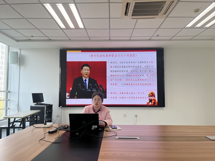 周玲余结合近年来高校违反师德师风的典型案例,深度解读《新时代高校教师职业行为十项准则》、《教育部关于高校教师师德失范行为处理的指导意见》等相关师德师风文件,通过以案为鉴、明纪释法来警醒党员老师要时刻保持清醒的头脑,严守政治纪律,增强自身廉政定力,并要求全体教师要持续抓好教学纪律、为师作风、学术良知、处事原则等方面的教风学风建设。