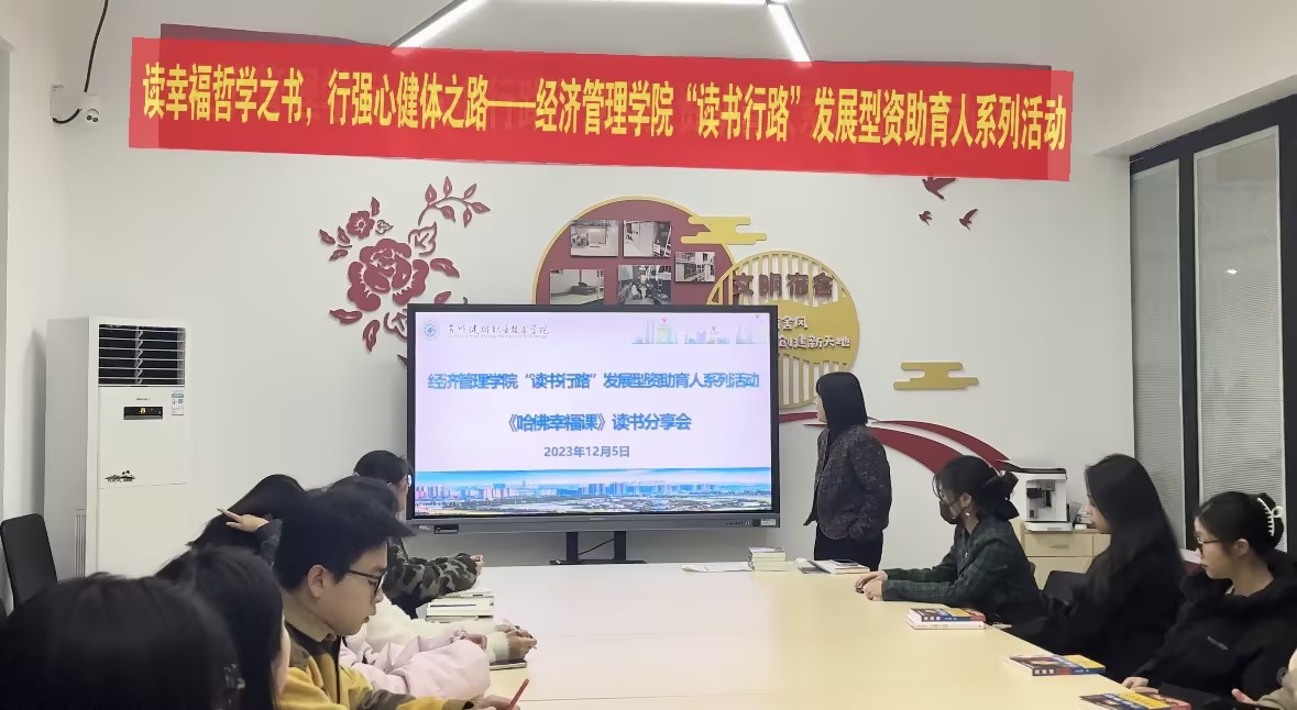 12月5日晚,一场关于通向幸福未来的思考之旅分享活动,在紫薇社区活动室开展。这是经济管理学院“读书行路”发展型资助育人系列活动的第二期读书分享会。辅导员房芸老师和2022级、2023级学生代表一起,分享有着“幸福教授”之称的哈佛社会心理学家丹尼尔·吉尔伯特的畅销书籍《哈佛幸福课》的阅读体验。在2023年进入倒计时,崭新的2024年即将到来的时刻,师生共话幸福这一闪耀着人类不断思索的智慧光芒的经典话题。