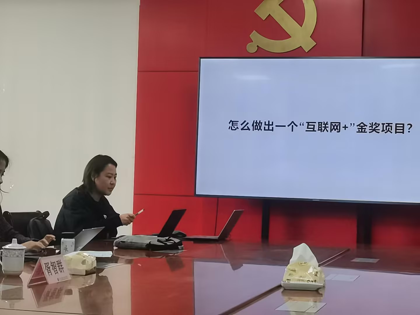 主讲人胥智群博士结合自身的比赛经验,强调了互联网+赛事的重要性和含金量,分享了在团队组建、项目打磨,校赛选拔、省赛备赛等诸多方面积累的宝贵经验。