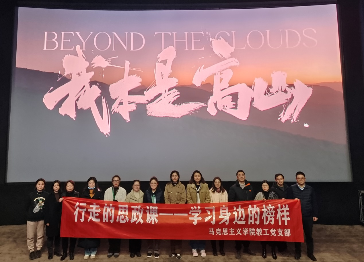 为进一步深入学习贯彻习近平新时代中国特色社会主义思想,进一步弘扬主旋律,致敬时代楷模,汲取榜样力量,学习“时代楷模”张桂梅忠诚执着守初心,无私奉献担使命的精神品格,2023年12月5日下午,马克思主义学院组织教工支部20余人走进影院观看电影《我本是高山》。