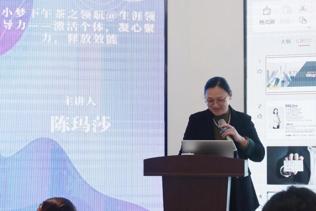活动中,国际职业培训师陈玛莎老师为我们带来了一场精彩的生涯领导力课程,陈老师从企业管理的本质介绍到生涯领导能力,引出四个问题:如何管理好新生代员工、为什么需要生涯领导力、如何赋能最大化团队效能、如何驱动团队执行力,随后引导各小组学员进行讨论和交流分享。