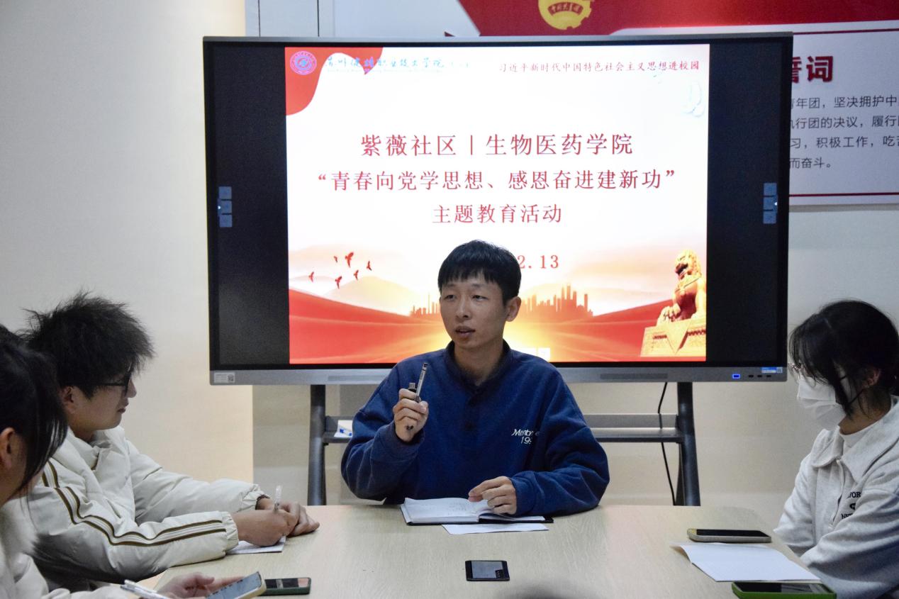 为深入学习习近平新时代中国特色社会主义思想,增强新时代新青年的责任感和使命感。12月13日,生物医药学院组织学生会骨干在紫薇社区开展“青春向党学思想、感恩奋进建新功”主题教育。
