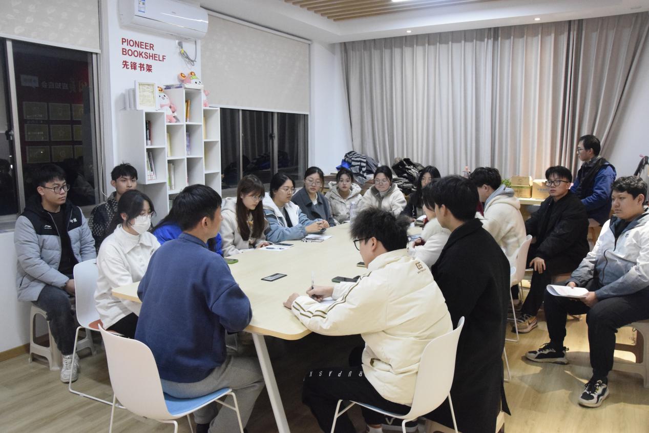 辅导员刘豪杰老师带领同学们学习了12月11日团省委面向全省团员和青年开展学习贯彻习近平新时代中国特色社会主义思想主题教育工作推进会上司勇书记的讲话。分别从从坚持党的领导、加强理论学习、做好自身定位、杜绝形式主义、贯彻以学促干等方面展开教育学习。要求学生会成员充分结合自身的医药专业特色,发挥学生会的良好平台,积极开展第二课堂校园文化活动,以专业本领服务社会成就自我。接着,学生会各部门总结近期工作并提出未来规划,接下来会更好的服务师生、服务校园、服务社会,鼓励同学们积极参与第二课堂文化活动,让同学们在活动中锻炼、进步、成长,以奉献书写青春理想,用行动践行拼搏和团结协作精神。