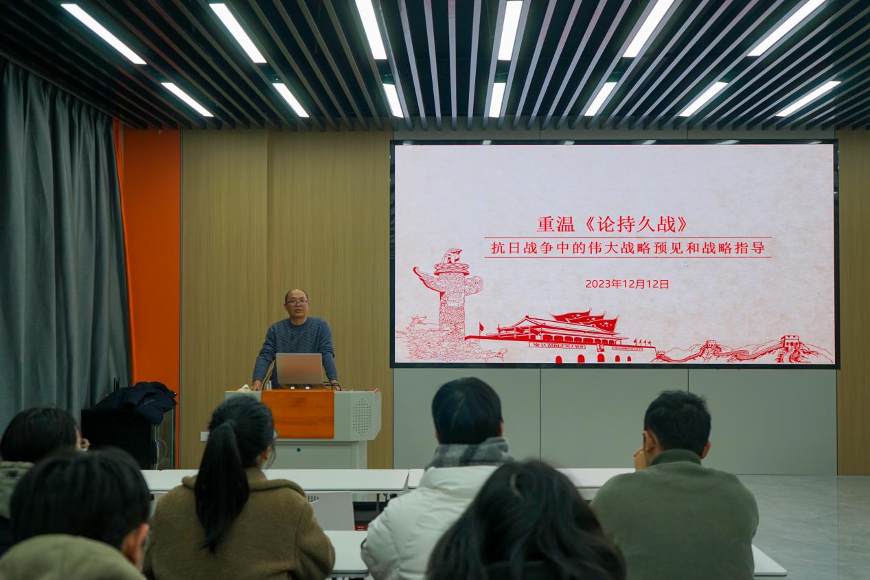 12月12日,人工智能学院党总支副书记陈东生为第二十四期业余党校学员们带来了一场主题党课,重温中国共产党领导抗日战争的纲领性文献《论持久战》。